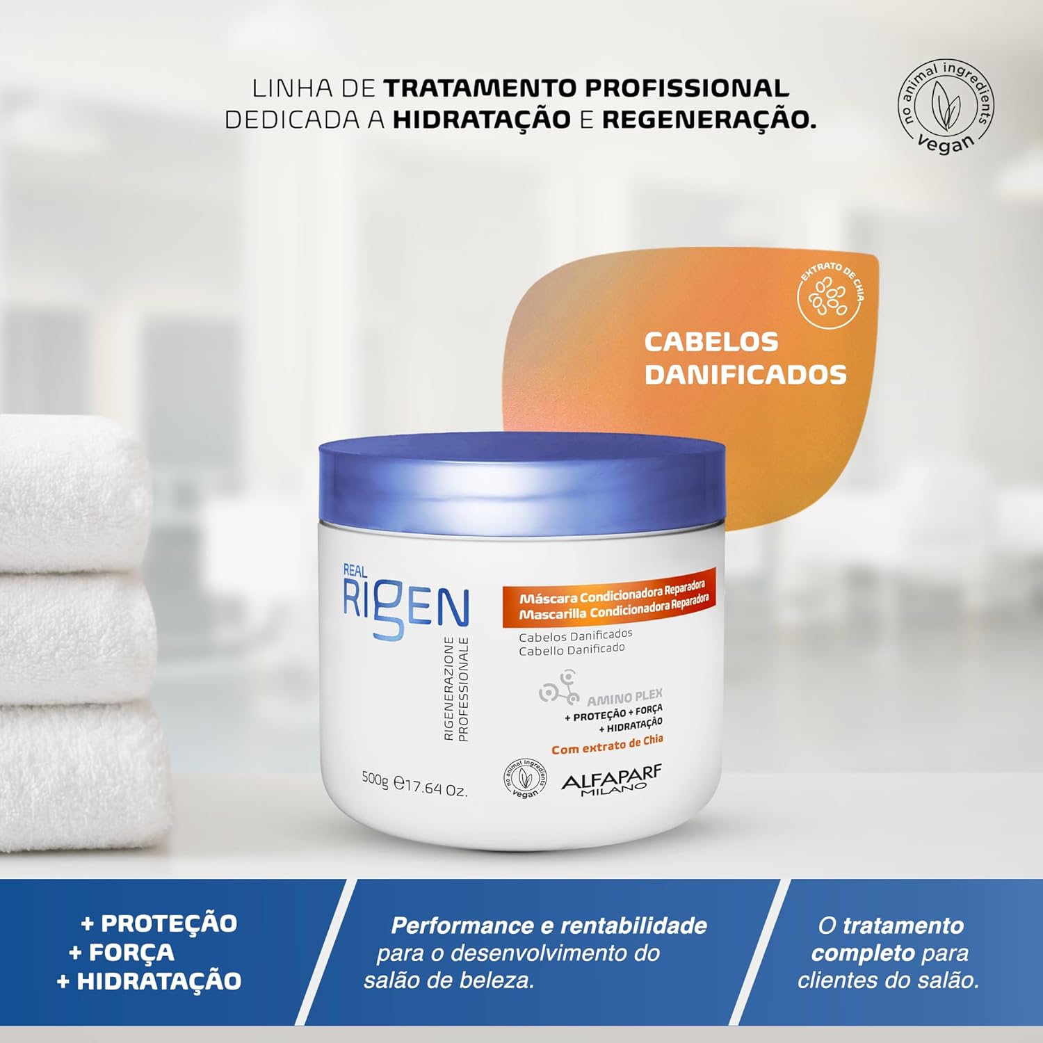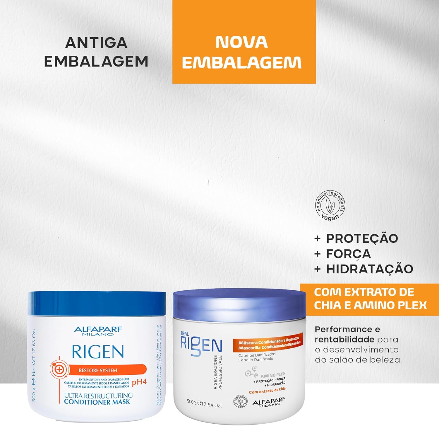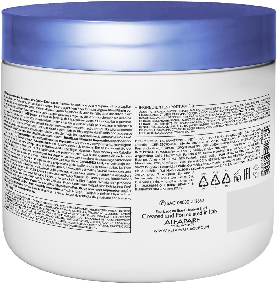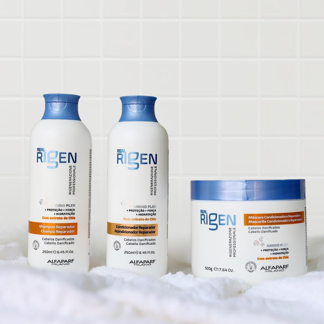 Máscara Real Rigen Reparadora, tratamento profundo para recuperar a fibra capilar desde a parte mais interna. A nova geração da clássica linha Alfaparf Milano, agora com nova fórmula vegana.