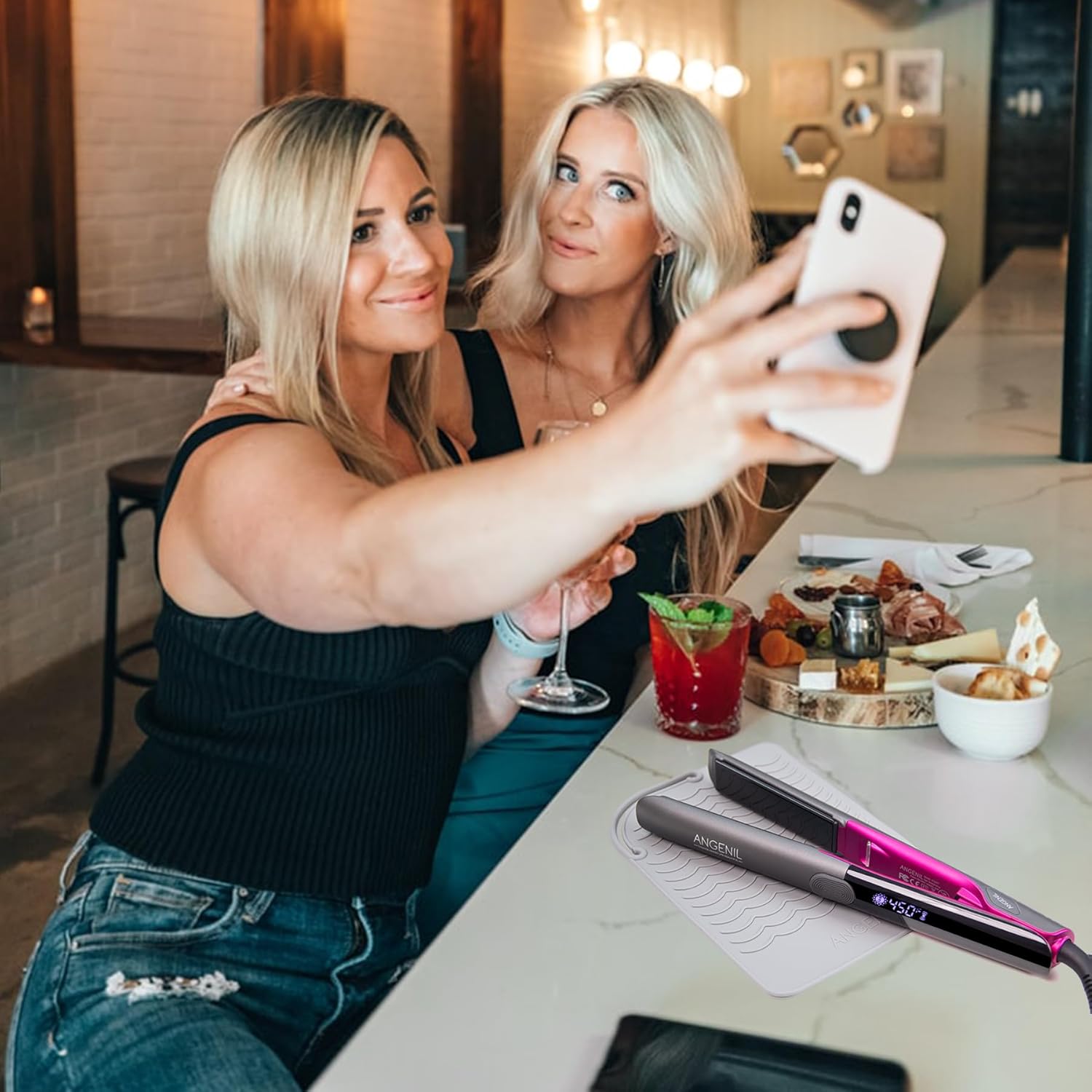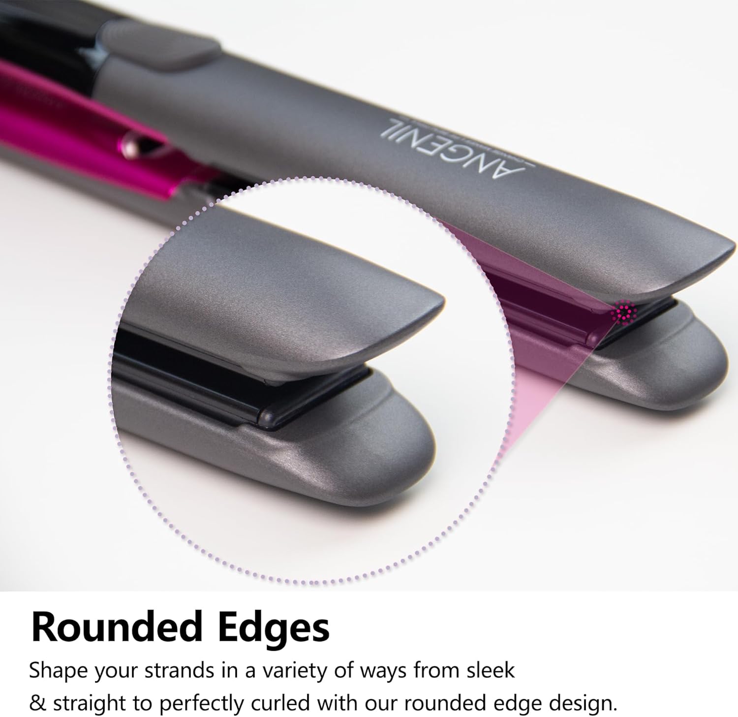 Alisador de cabelo de viagem e desligamento automático após 60 minutos – Cabo giratório para modelagem sem emaranhados. Voltagem dupla para uso mundial e desligamento automático após 60 minutos de uso para segurança. A voltagem dupla compatível com energia de 110 V-240 V pode ser usada em qualquer lugar do mundo inteiro, sem preocupações para sua viagem. 1x Alisador de cabelo ANGENIL Flat Iron, 1 x Tapete de silicone de grau alimentício resistente ao calor para armazenamento e transporte segur