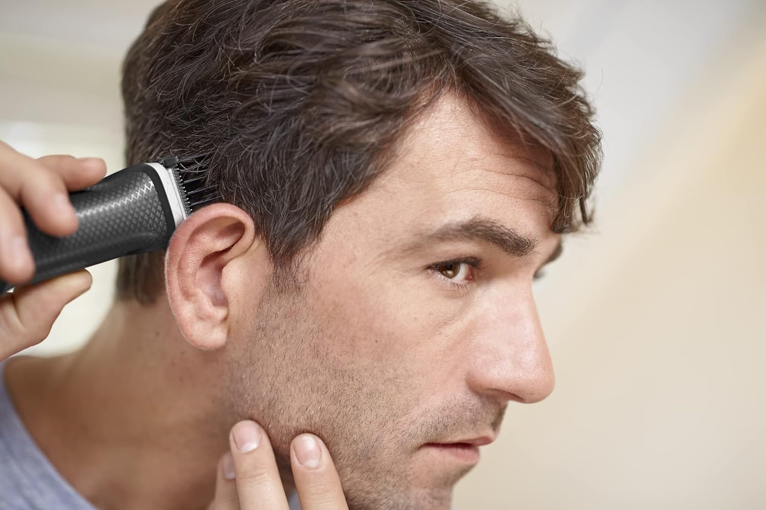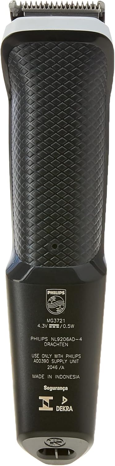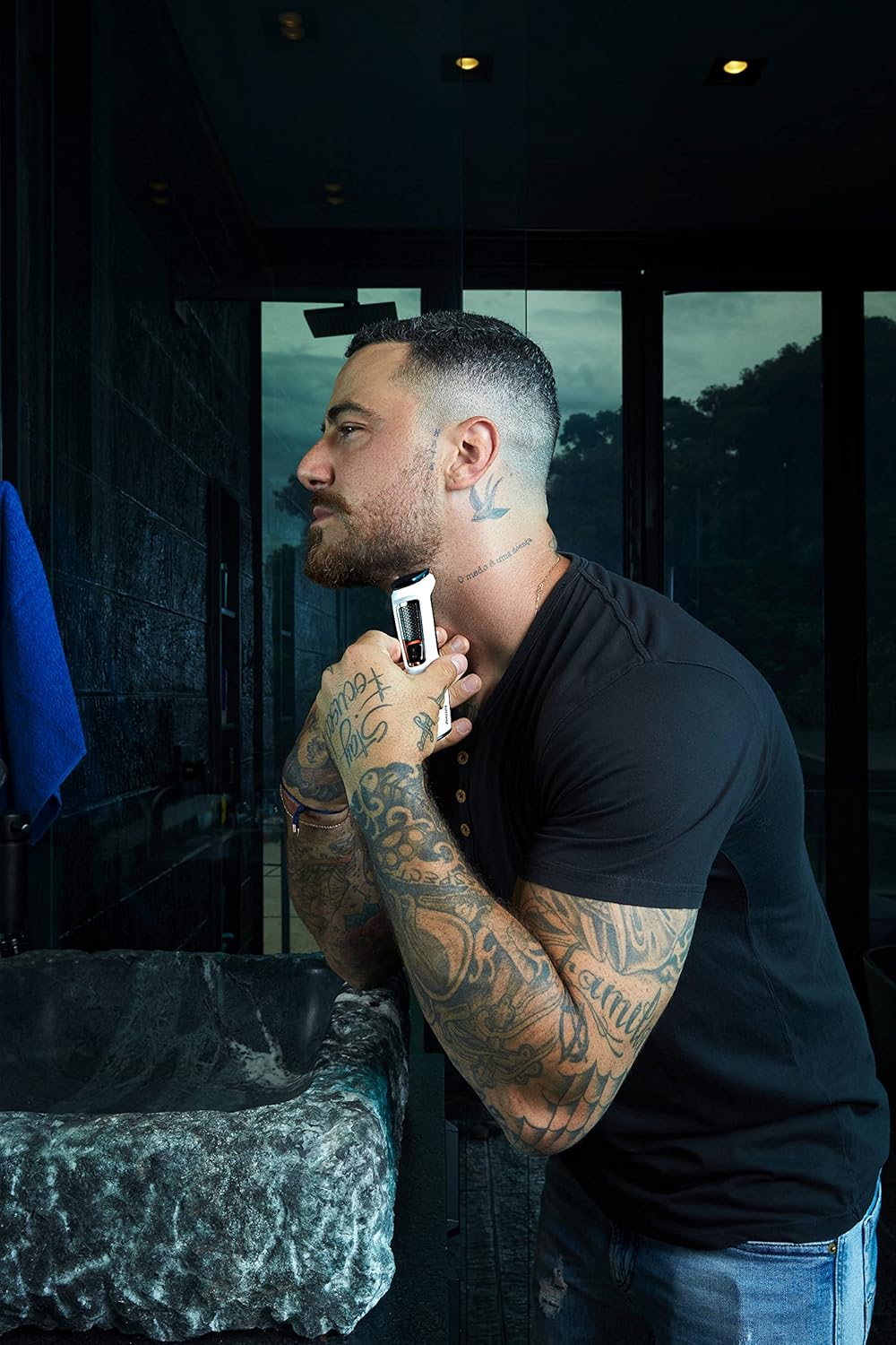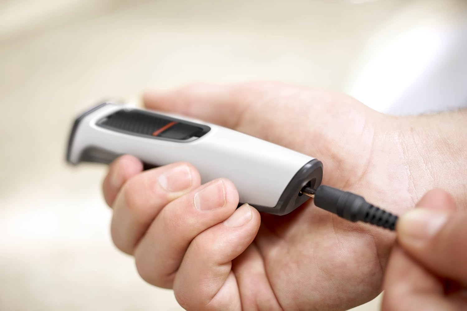 Qualquer estilo ao seu alcance! 7 acessórios: Aparador, aparador de pelos para o nariz e orelhas, 1 pente para cabelo (9mm), 1 pente para o corpo (3mm), 1 pente ajustável de 5 alturas (3 a 7 mm) e 2 pentes para barba (1 e 2 mm)