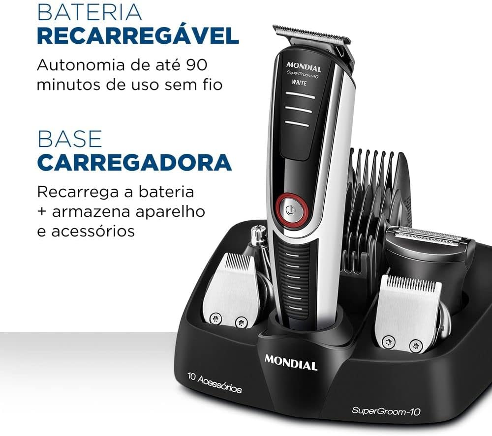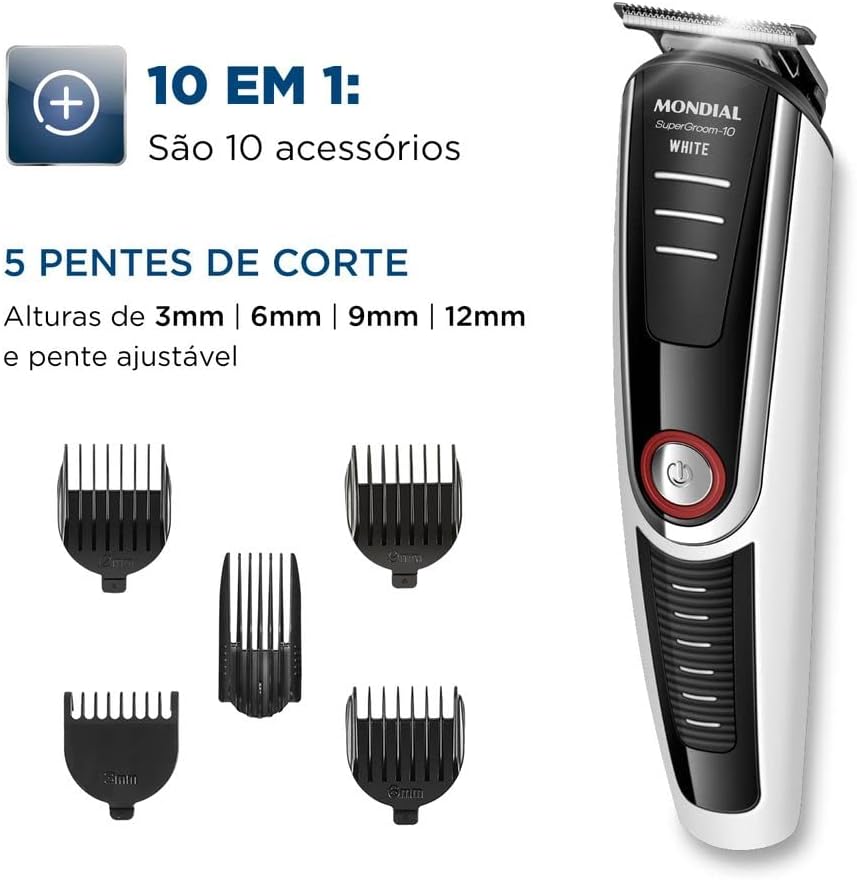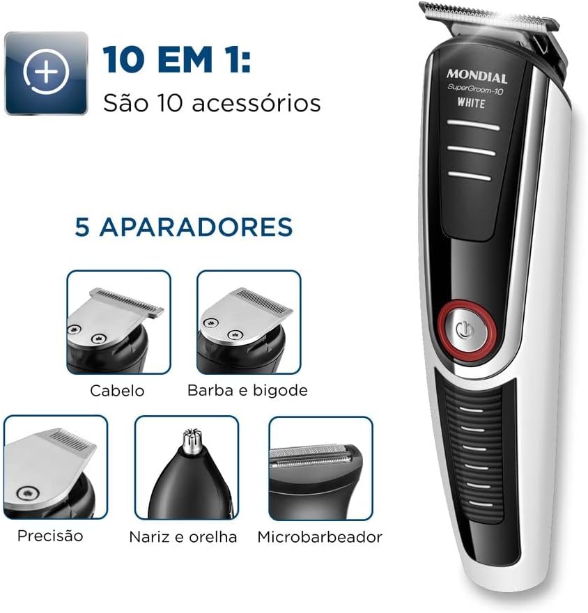10 EM 1: Aparador de cabelo, aparador de barba e bigode, pentes de corte, pente ajustável, aparador para nariz e orelha, aparador de precisão e microbarbeador