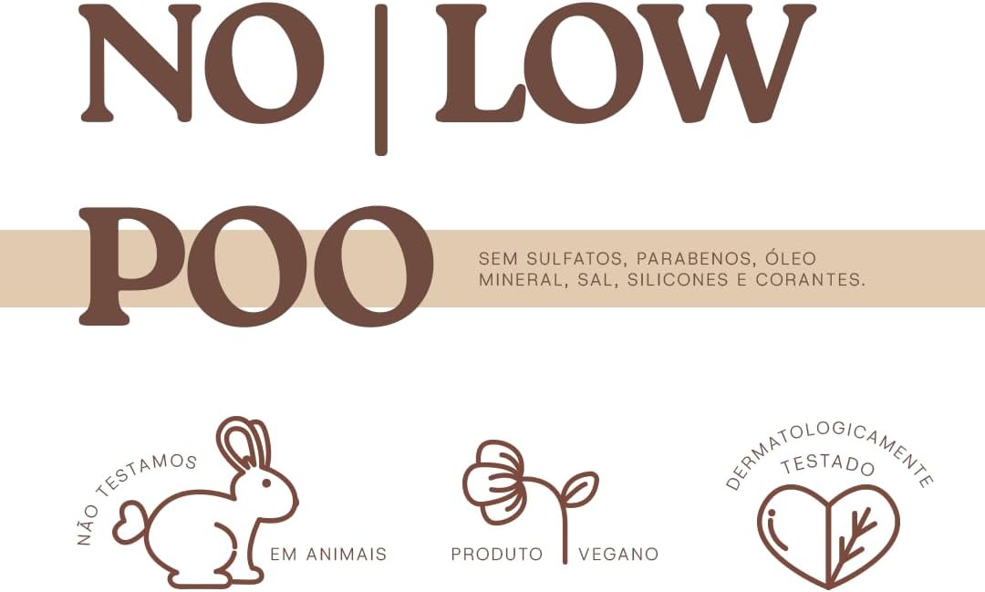 Fórmula liberada e segura: Produto vegano, testado dermatologicamente, liberado para No Poo e Low Poo, sem sulfatos, parabenos, óleo mineral, sal, silicones ou corantes.
