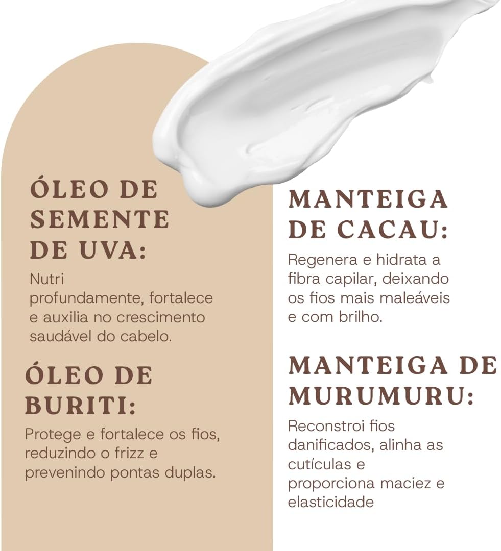 Nutrição profunda com manteiga de karité: Ação emoliente que nutre os fios, promovendo suavidade e controle do frizz.