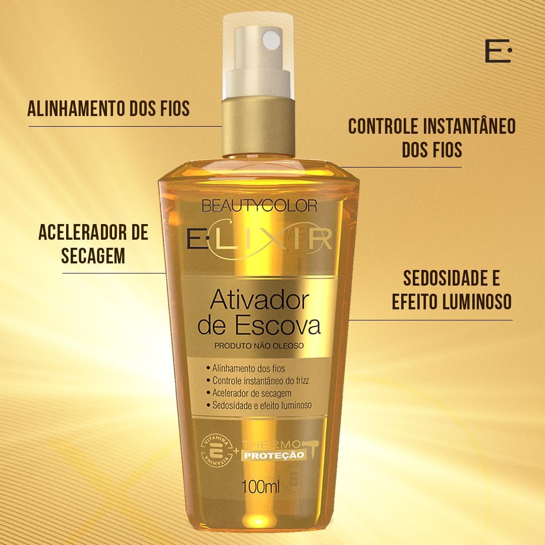 THERMO PROTETOR: O Ativador de Escova E.lixir forma um escudo protetor contra os danos causados por fontes de calor, preservando a saúde da fibra capilar mesmo com uso frequente de secador e chapinha. Reduz o frizz, deixando os cabelos impecáveis, alinhados e com brilho extraordinário.