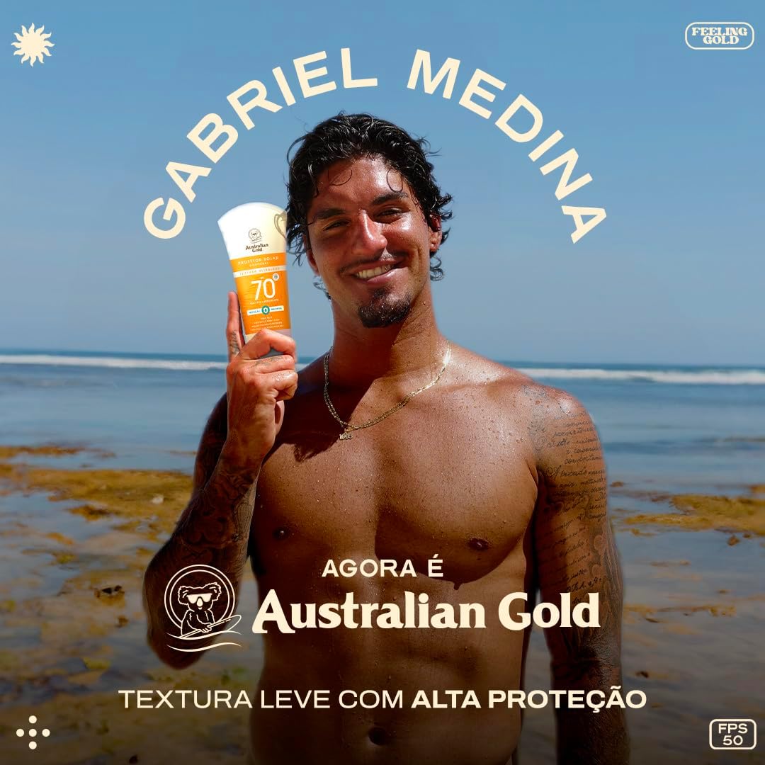 Protetor solar Facial com FPS 50 que protege contra os raios UVA e UVB e os efeitos diários da poluição. Formulado com ameixa de kakadu e extrato de chá verde, possui ativos antienvelhecimento e ação antioxidante. Com textura ultraleve, toque seco e rápida absorção e efeito matte, a linha Gel Creme de Australian Gold é resistente à água para garantir proteção em todos os momentos. Australian Gold Gel Creme é a primeira linha 100% segura para corais no Brasil: não interfere no ciclo reprodutivo e não causa o branqueamento de corais. Australian Gold é uma marca apaixonada pelo planeta, por isso, a fórmula é vegana, não são conduzidos testes em animais e a embalagem é feita de plástico vegetal.