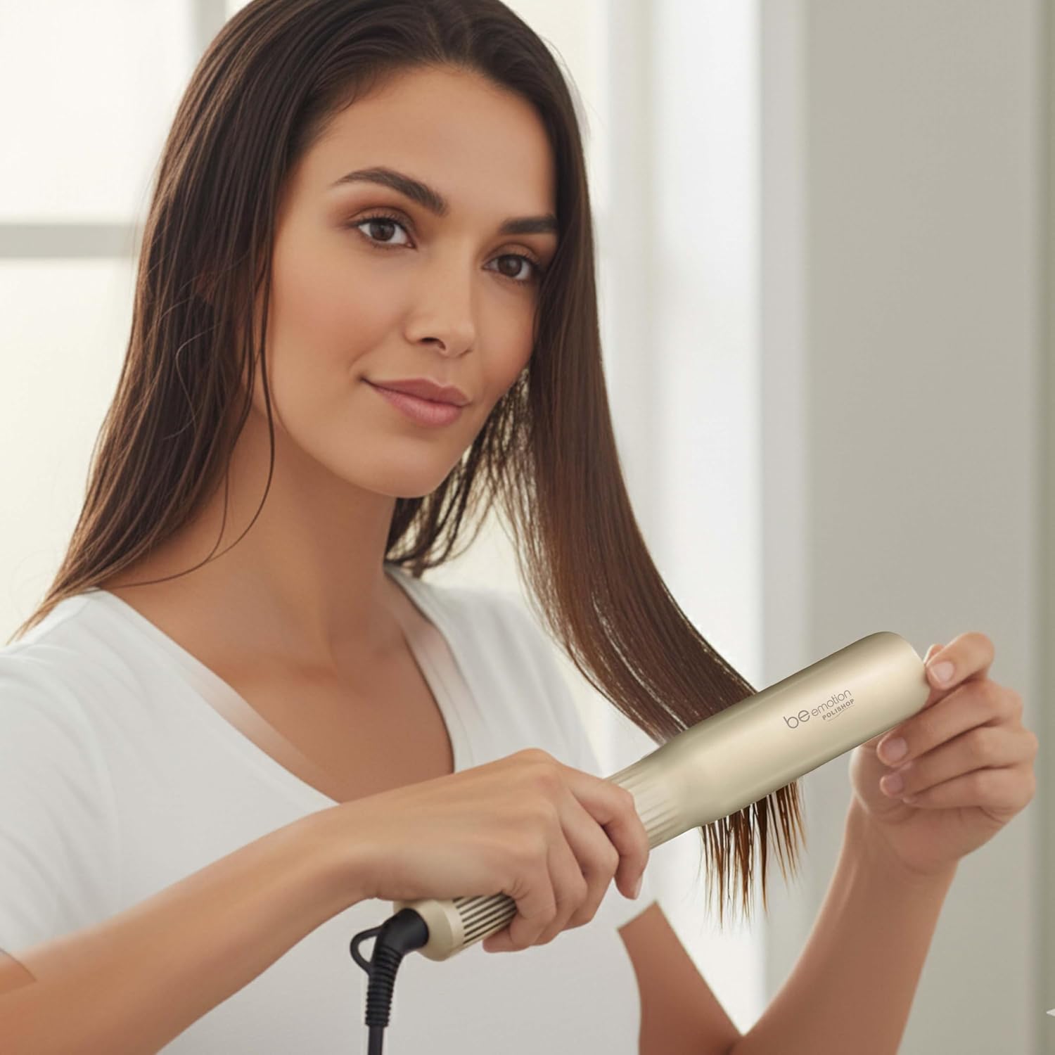 Com o exclusivo sistema Fast Flow, AirLiss Be Emotion libera um vento automático de alta velocidade assim que as placas se fecham, permitindo secar e alisar os fios rapidamente em um só movimento.
