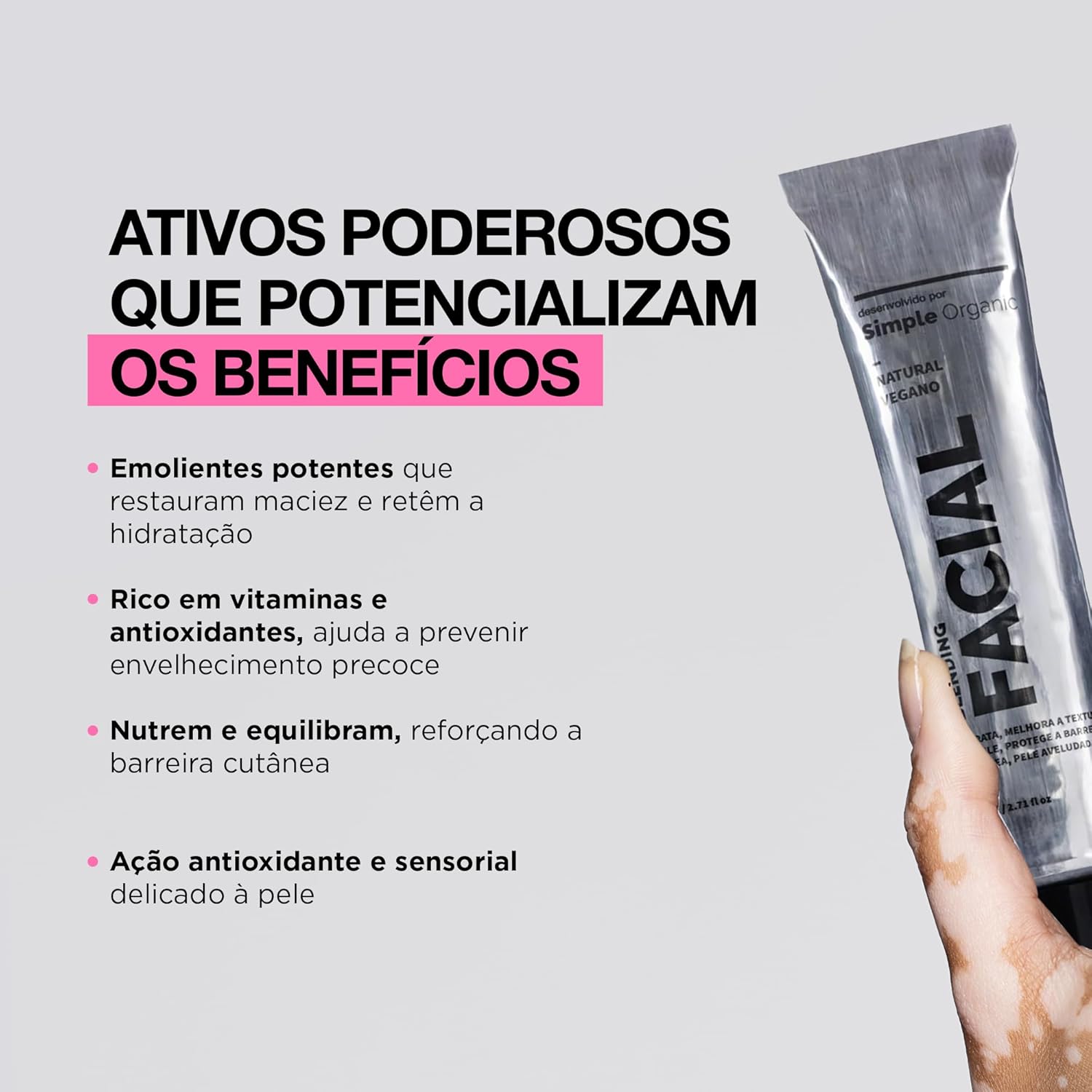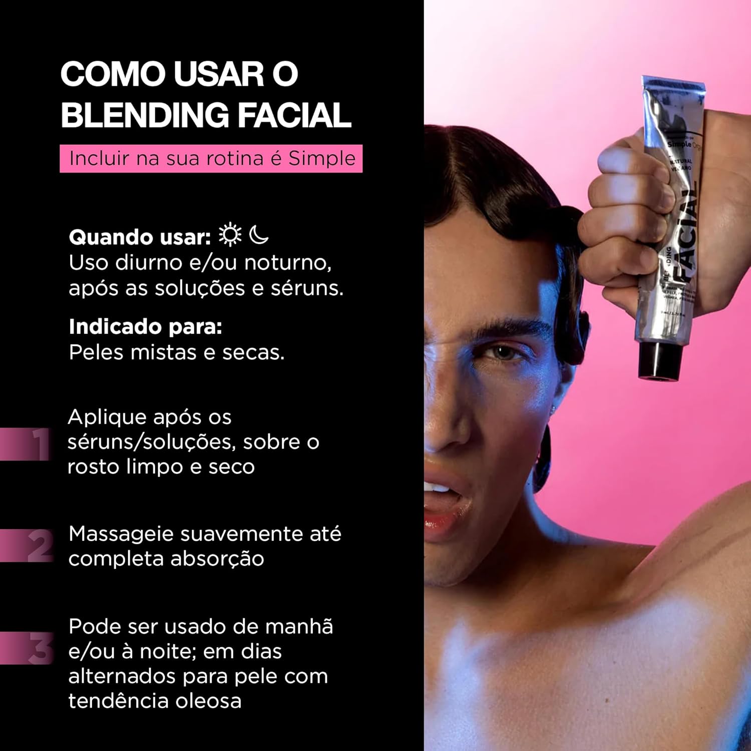 Best-seller da Simple, o Blending Facial é a melhor escolha das peles secas que precisam de hidratação profunda e conforto imediato.