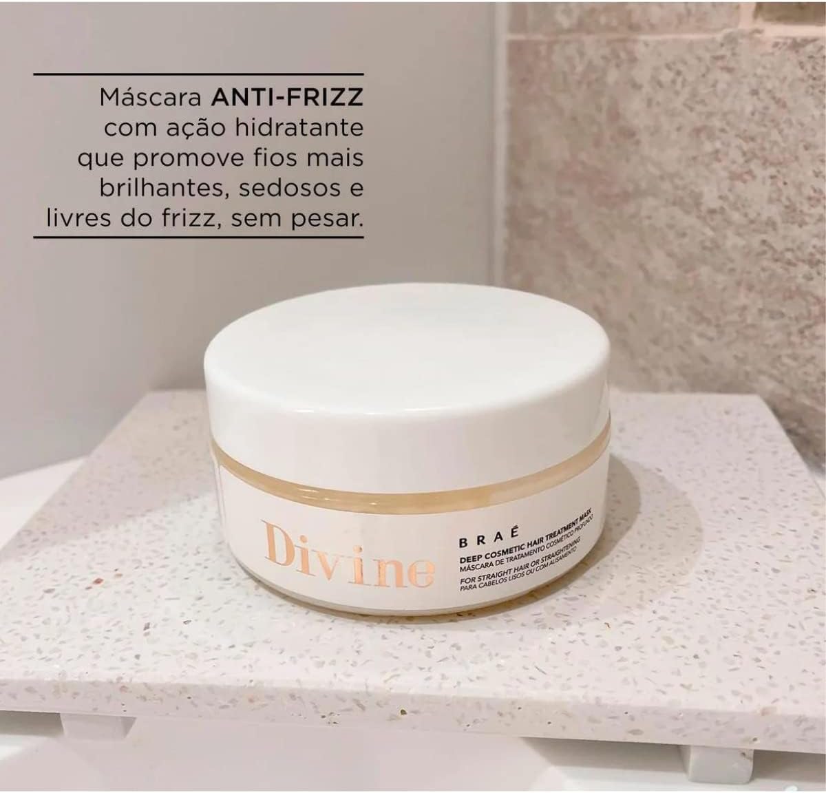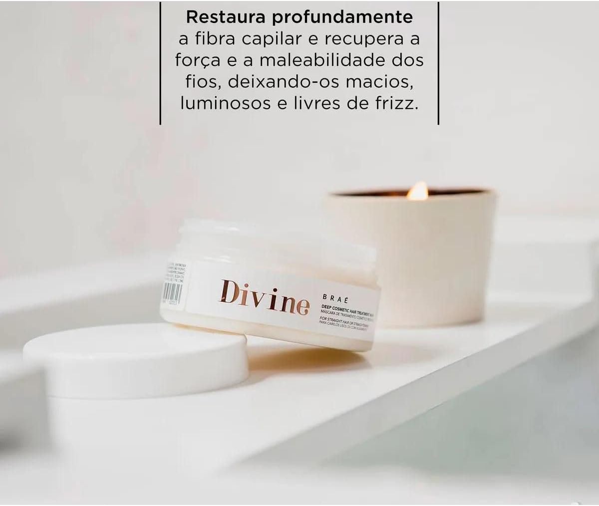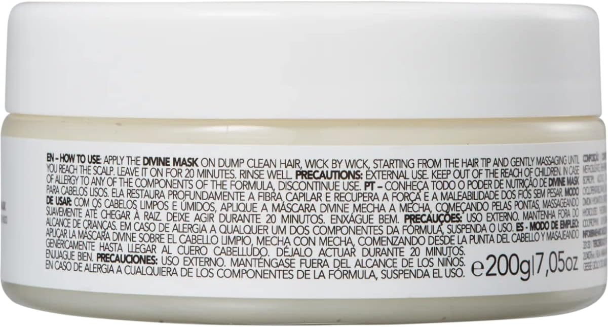 Conheça todo o poder de hidratação e nutrição da Máscara anti-frizz Divine para cabelos lisos. Ela restaura profundamente a fibra capilar e recupera a força e a maleabilidade dos fios sem pesar.