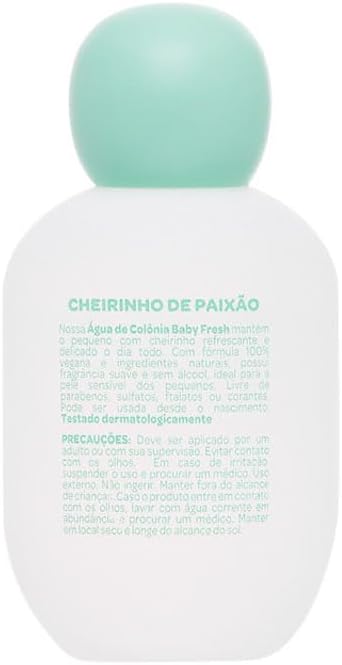 Nossa Água de Colônia Baby Fresh mantém o pequeno com cheirinho refrescante e delicado o dia todo. Com fórmula 100% vegana e ingredientes naturais, possui fragrância suave e sem álcool, ideal para a pele sensível dos pequenos. Livre de parabenos, sulfatos, ftalatos ou corantes. Pode ser usada desde o nascimento. Testado dermatologicamente