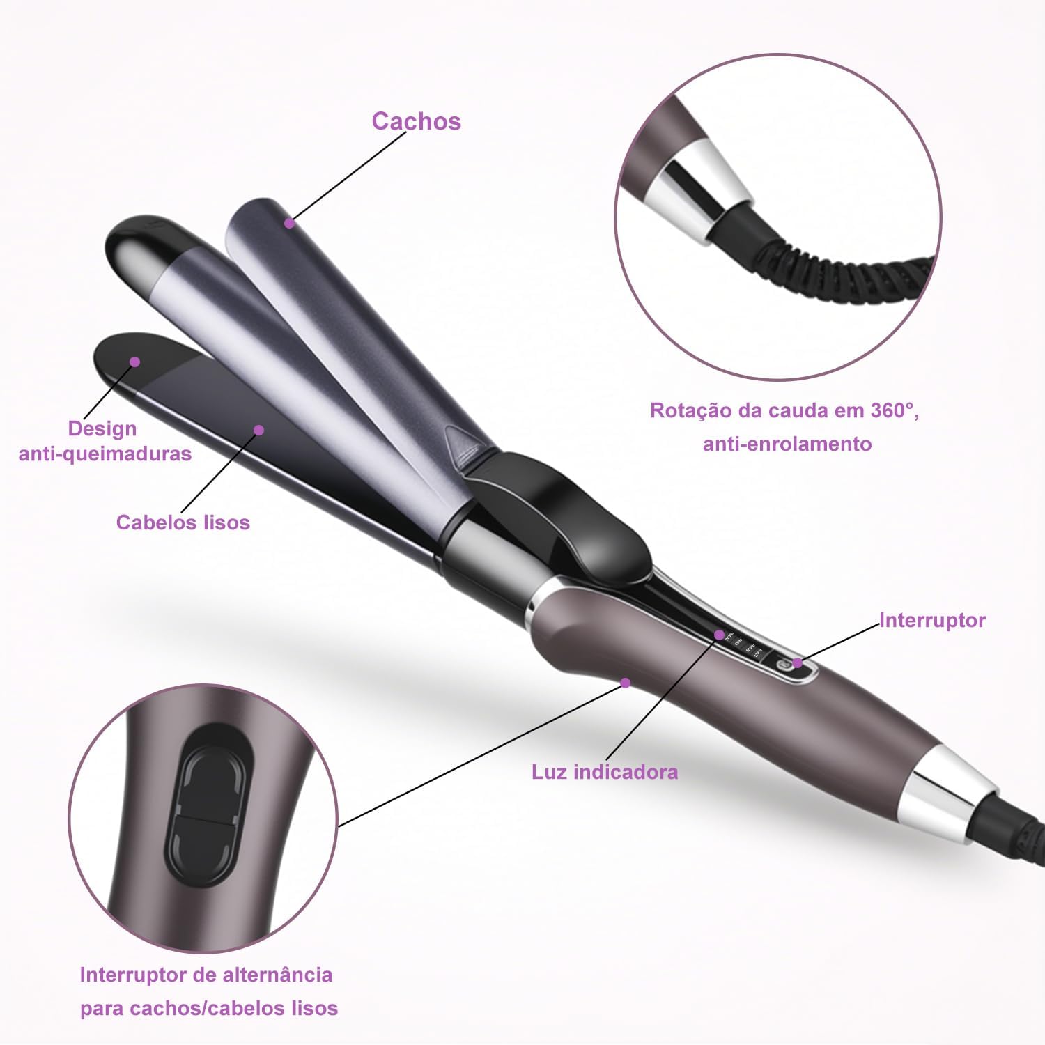 Modelador de Cabelo Profissional 2 em 1 – Chapinha e Cacheador 31mm