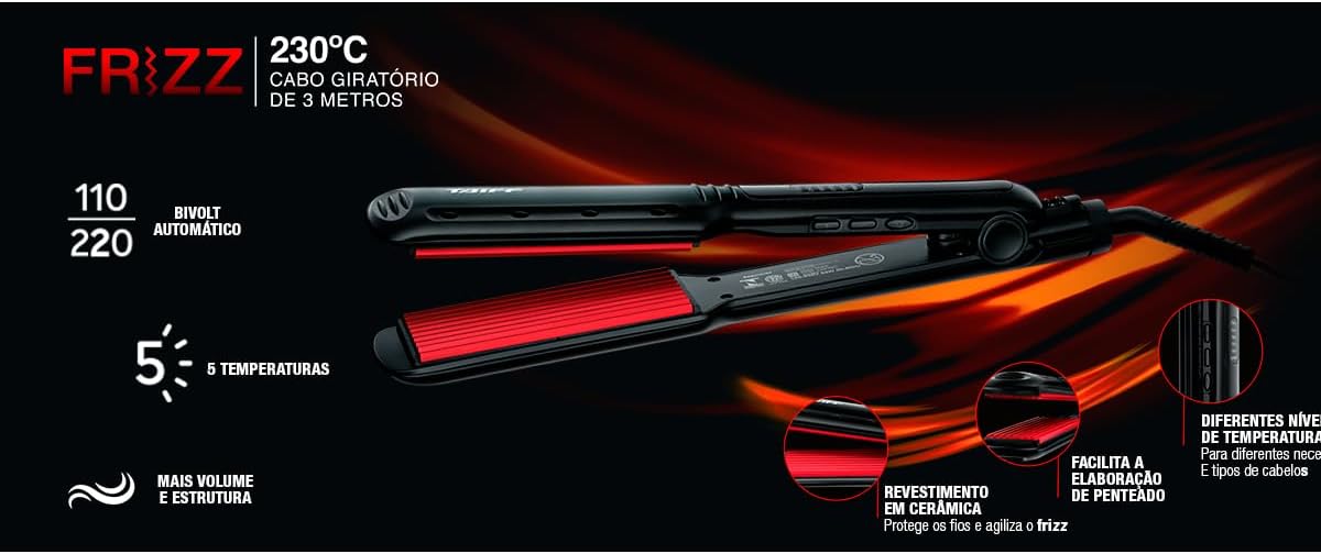Perfil cerâmico mais largo, facilitando o processo de “frizzar” o cabelo