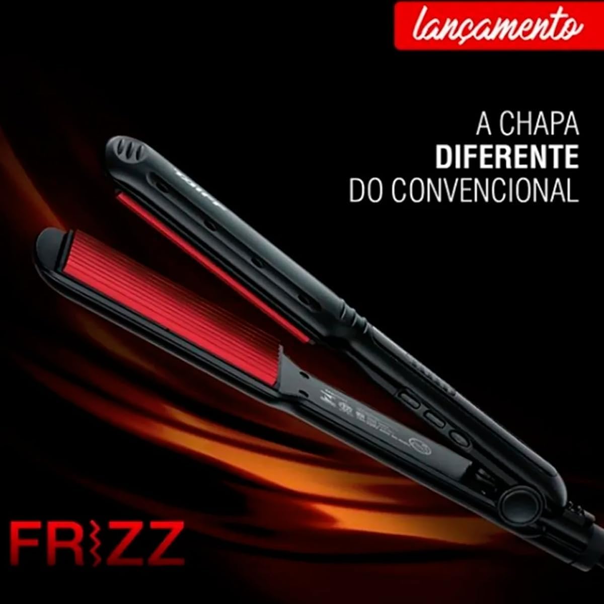 Chapa Frizz é ideal para quem possui cabelos finos, pois cria volume e proporciona estrutura para facilitar a elaboração de penteados.