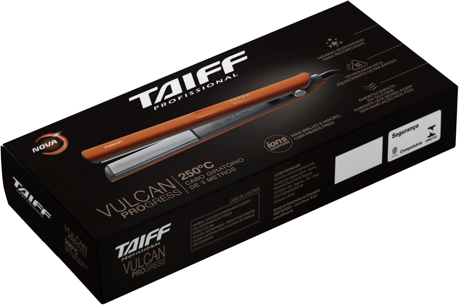 Para integrar a Linha Vulcan, amada pelos profissionais cabeleireiros e referência quando se trata de potência, design, temperatura e resultado, chega uma nova chapa para processos químicos. Com 5 temperaturas, entre 170°C e 250°C, a chapa Vulcan Progress foi desenvolvida para o profissional atingir o melhor desempenho em progressivas, nos mais diversos tipos de cabelo. As bordas estreitas e o perfil largo proporcionam agilidade e um acabamento perfeito, inclusive próximo à raiz. Seu sensor eletrônico assegura a rápida recuperação da temperatura, em até 10 segundos, tornando o processo ainda mais eficiente. O cabo giratório com 3 metros de comprimento permite ao profissional maior mobilidade. Chapa Vulcan Progress: Máximo desempenho para progressiva.