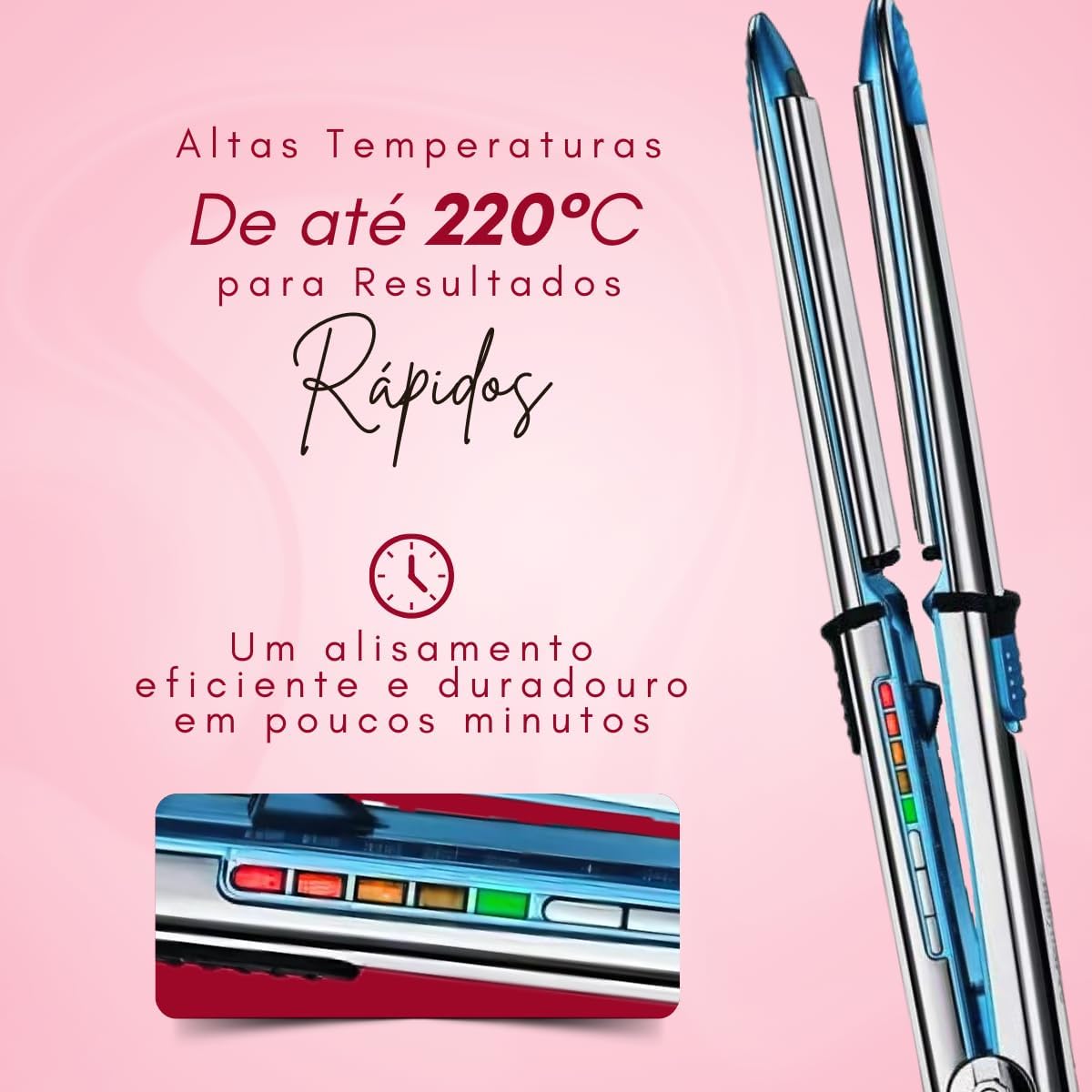 - Temperatura de 230 Graus: Alta temperatura para um alisamento rápido e eficiente.