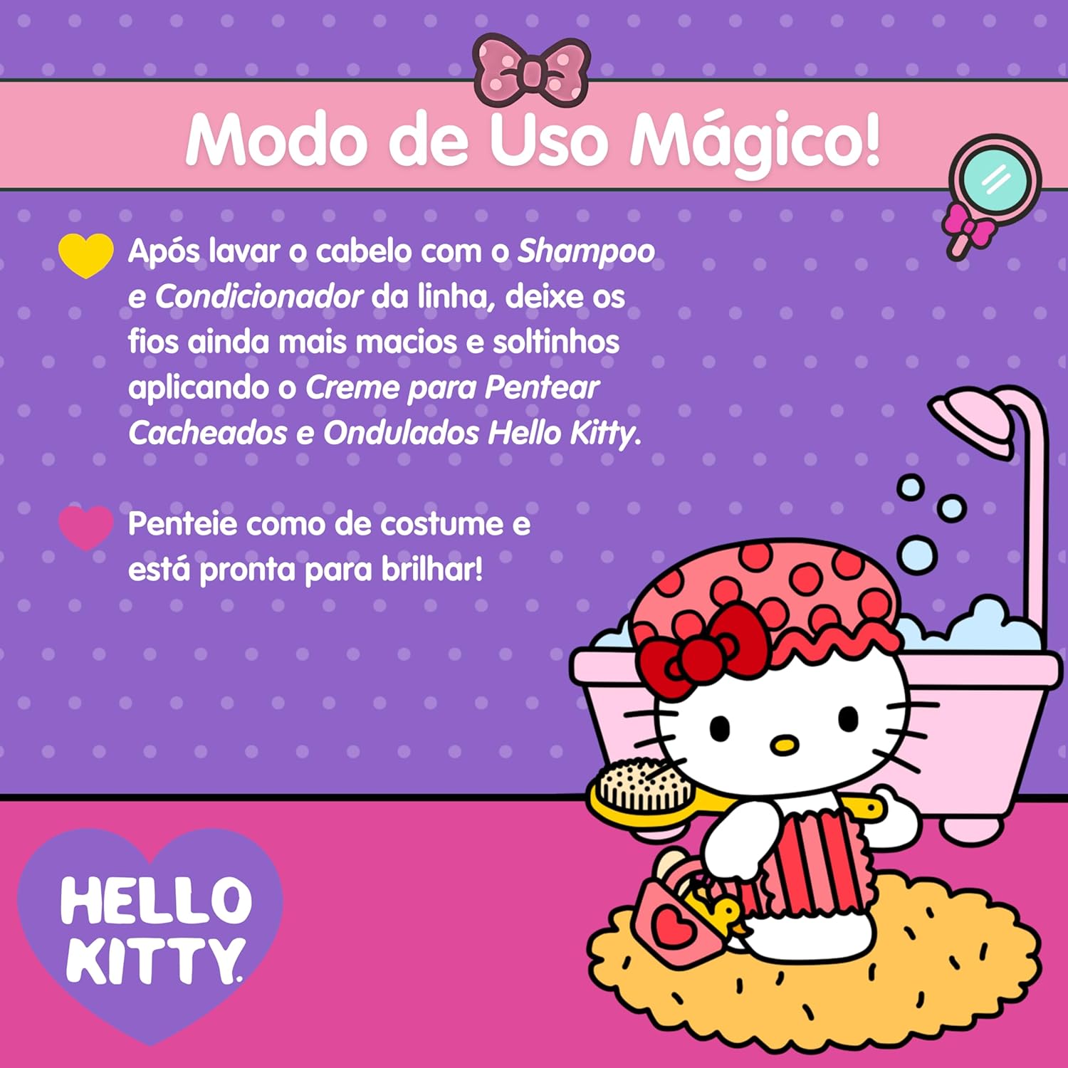O Creme de pentear Infantil Hello Kitty é ideal para cuidar dos cabelos ondulados e cacheados das crianças, oferecendo definição e hidratação na medida certa. Sua fórmula suave e dermatologicamente testada facilita o desembaraço e garante cachos bem definidos, macios e sem frizz. Com o Creme de pentear Hello Kitty, os cabelos das crianças ficam mais hidratados e com um toque suave, sempre prontos para qualquer aventura. Ideal para o uso diário, é o cuidado que os cachos precisam para se manterem saudáveis e cheios de vida.