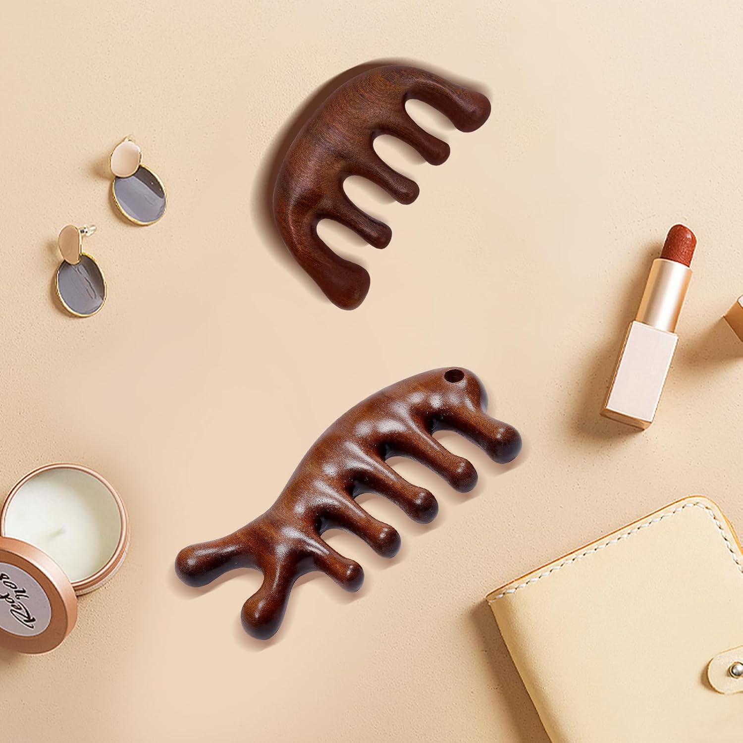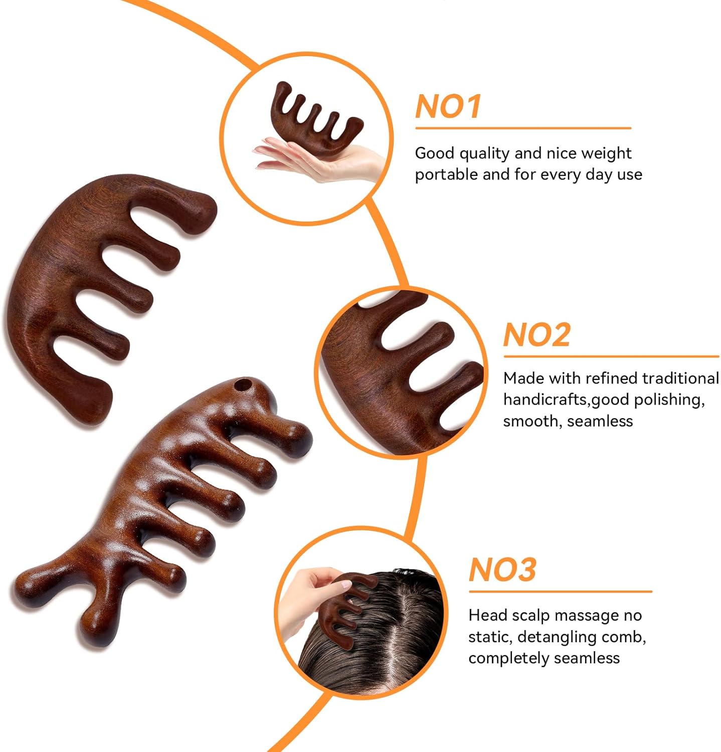 CKCLGTDM Pacote com 2 pentes de massagem de couro cabeludo de madeira, pente massageador de couro cabeludo de sândalo, escova de madeira Gua Sha para crescimento de cabelo feminino e masculino