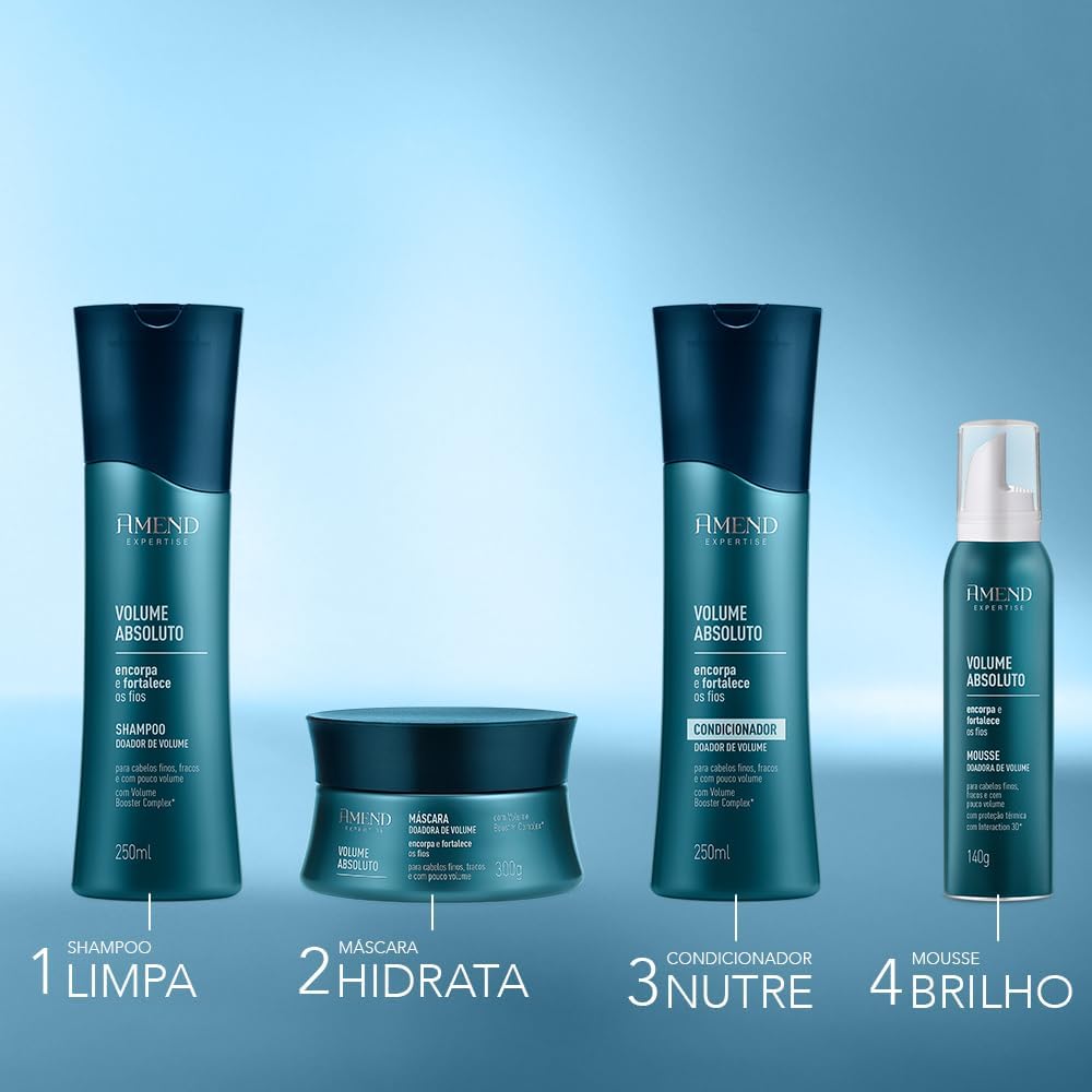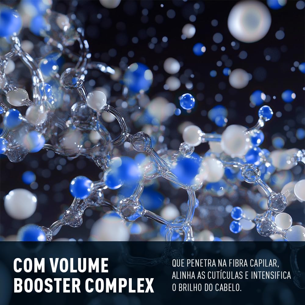 A fórmula inovadora suaviza as cutículas danificadas, melhorando a integridade estrutural da fibra capilar, enquanto os aminoácidos biorreparadores aumentam o diâmetro dos fios e repõem a massa capilar perdida, deixando-os mais volumosos, encorpados e fortes. Com a exclusiva tecnologia Volume Booster Complex*, os ativos penetram na fibra capilar, alinhando as cutículas e intensificando o brilho do cabelo. Hidrata e nutre, além de reparar cabelos profundamente danificados. Forma um escudo protetor ao redor dos fios, protegendo da exposição a fontes de calor. O cabelo fica macio, brilhante, volumoso e mais resistente. Dermatologicamente testado