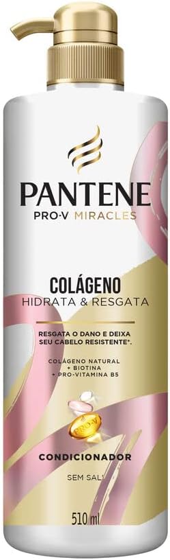 O condicionador sem sal’ Pantene Pro-v Miracles Colágeno Hidrata & Resgata, resgata profundamente o cabelo, reduz as pontas duplas, fecha as cutículas e hidrata e revitaliza. Com colágeno natural, biotina, Pró-vitaminas B5, repara e revitaliza os cabelos deixando-os brilhantes e saudáveis. Inspirados nos benefícios mais renomados do mundo junto ao poder da Pro-Vitamina B5, os produtos Pantene Pro-V Miracles Colágeno Hidrata & Resgata te ajudarão com a nutrição capilar da raiz até as pontas, graças a uma poderosa fórmula com Colágeno 100% natural; Pró-vitamina B5 e Biotina que protege o cabelo dos danos associados às constantes transformações.