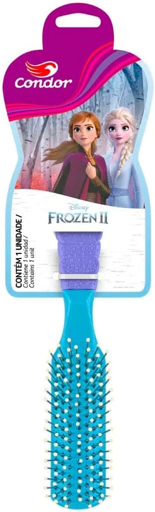 Le os visuais divertidos dos personagens de Frozen para a hora da escovação nunca foi tão fácil. Com pinos de plástico com pontas protetoras, a Escova de Cabelo Frozen da Condor desembaraça e escova qualquer tipo de cabelo. Prática e compacta, sua empunhadura é de borracha e garante mais conforto ao manusear. Disponível em duas estampas sortidas, resistentes à água e ao calor.