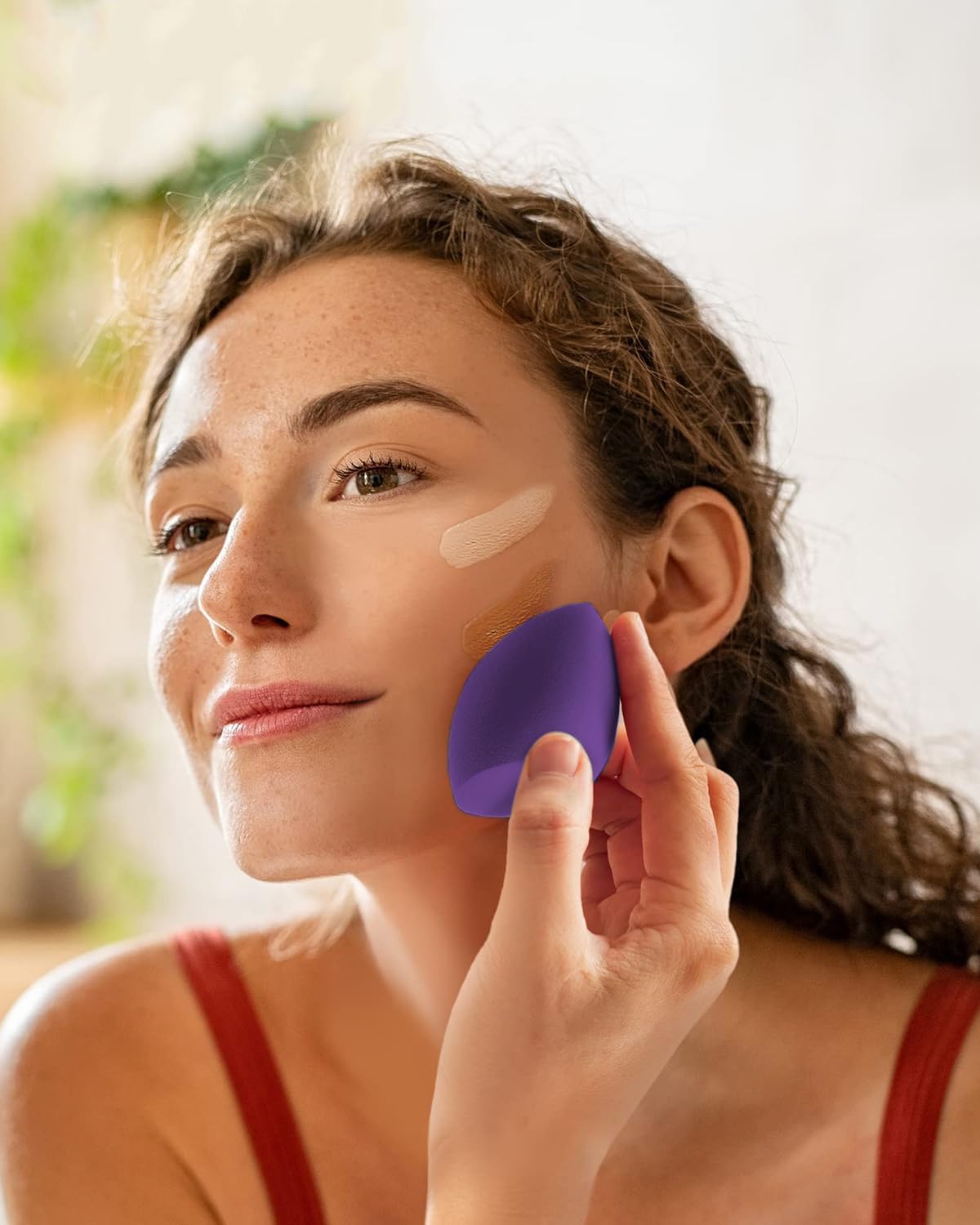 【Multiuso】: Conjunto de liquidificador de esponja de beleza para todos os tipos de cosméticos, 3 formas diferentes, 4 cores, pode caber em todas as áreas ao redor do seu rosto, mesmo como asa do nariz, pele ao redor dos olhos. Elas são perfeitas para maquiagem de base facial