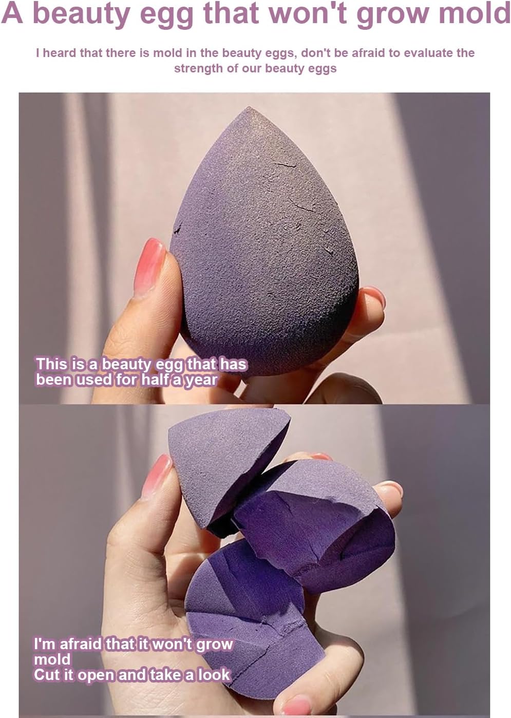 Elas são super macias e têm boa elasticidade. Fácil de armazenar, transportar e viajar, seco e à prova de poeira. Você receberá 4 esponjas e 1 caixa de ovos.