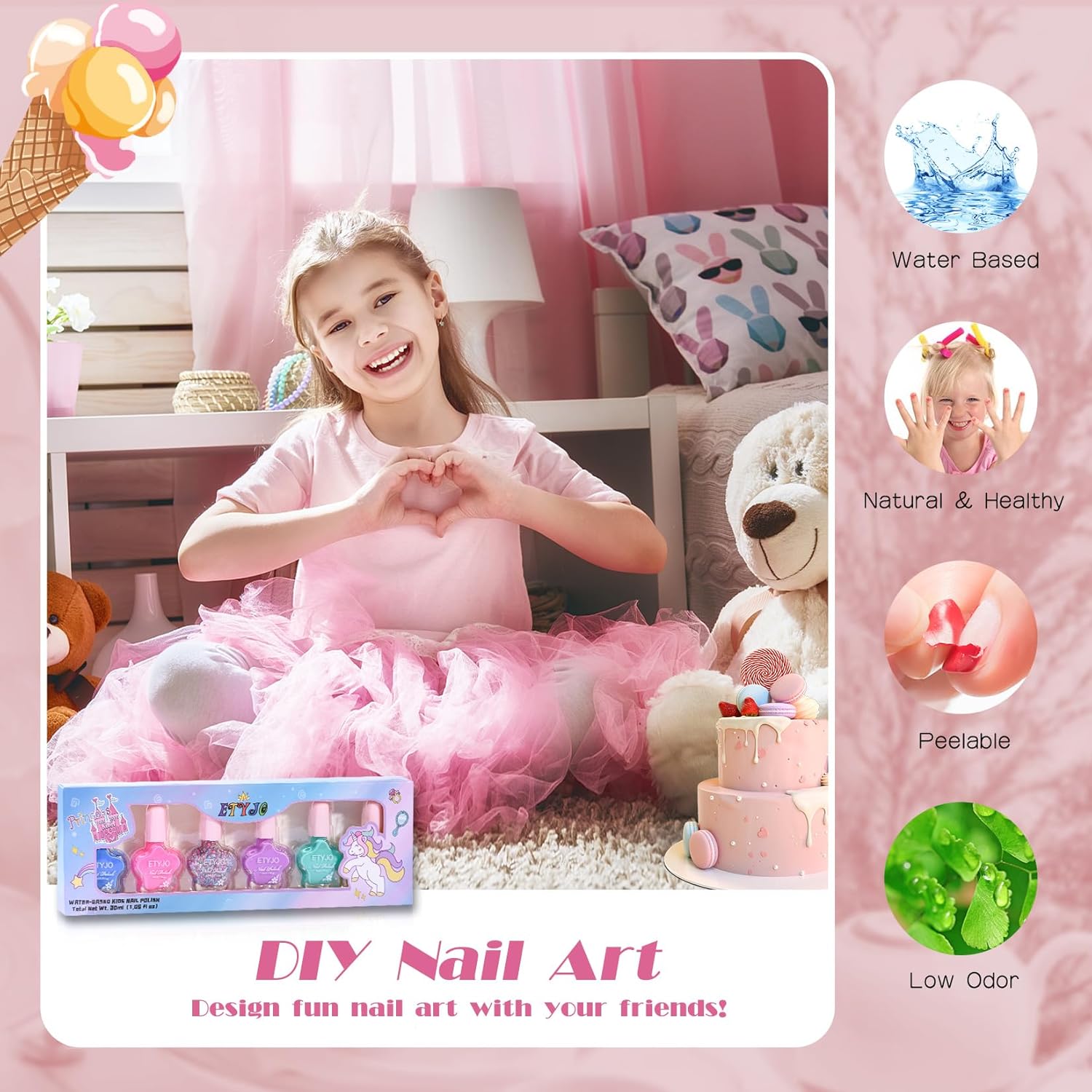 Polimento de unhas de secagem rápida: nossa fórmula de esmalte infantil seca rapidamente, as unhas ficam livres para tocar em 3 minutos, sem muito tempo de espera, para que sua princesa possa começar a brincar sem se preocupar com o esmalte das crianças em manchar suas roupas