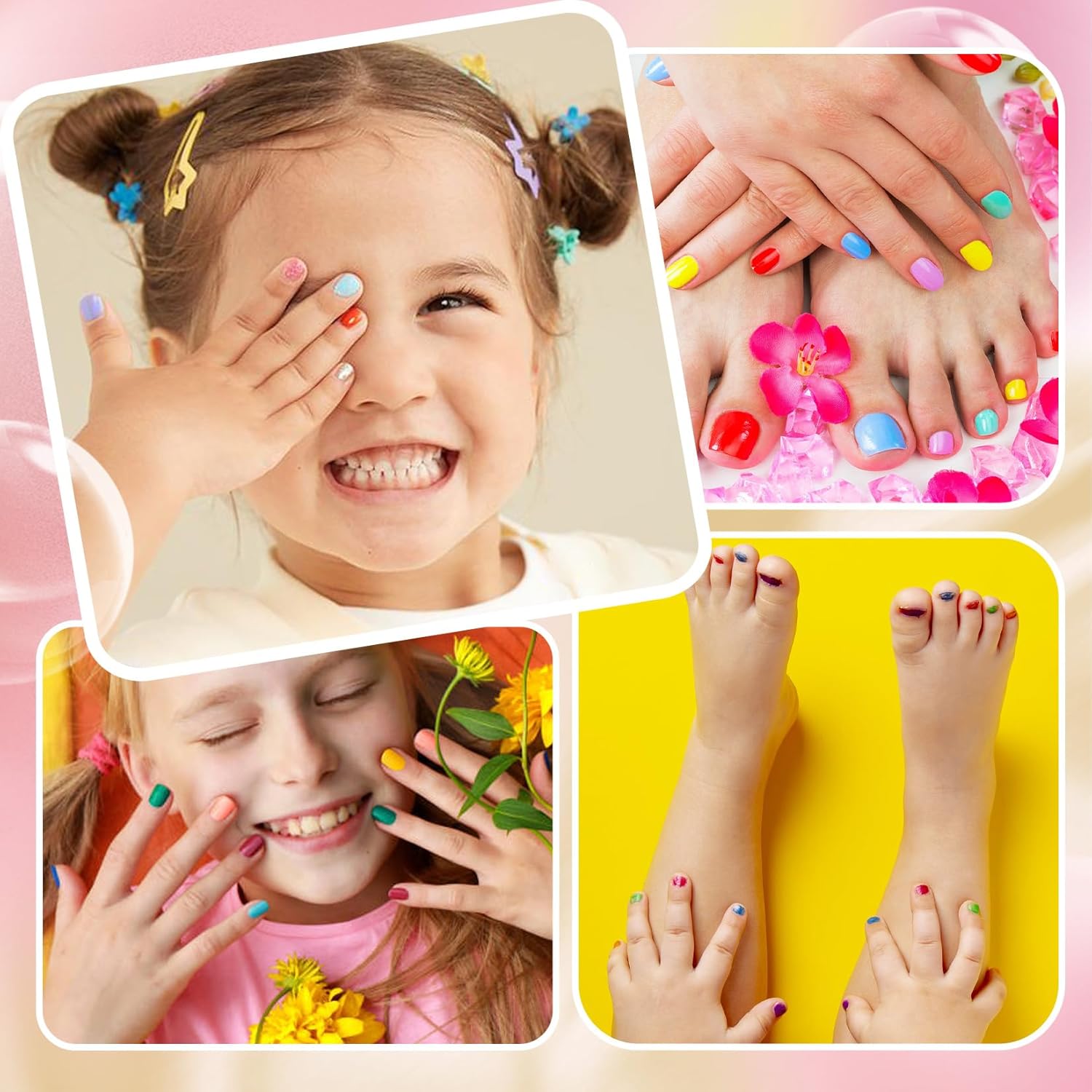 Fácil de remover: Retire o esmalte para crianças, nosso conjunto de esmaltes que pode ser facilmente retirado ou mergulhando seus dedos em água morna. Não há necessidade de removedor de esmalte. (Se você quiser que o esmalte na mão do seu filho dure mais, não lave com água morna)