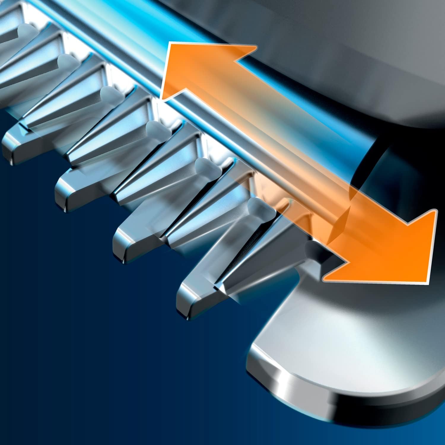 Tecnologia Trim-n-Flow: O design inovador do pente permite que os cabelos cortados sejam expelidos para longe das lâminas durante o uso, evitando que os cabelos longos fiquem presos no pente.