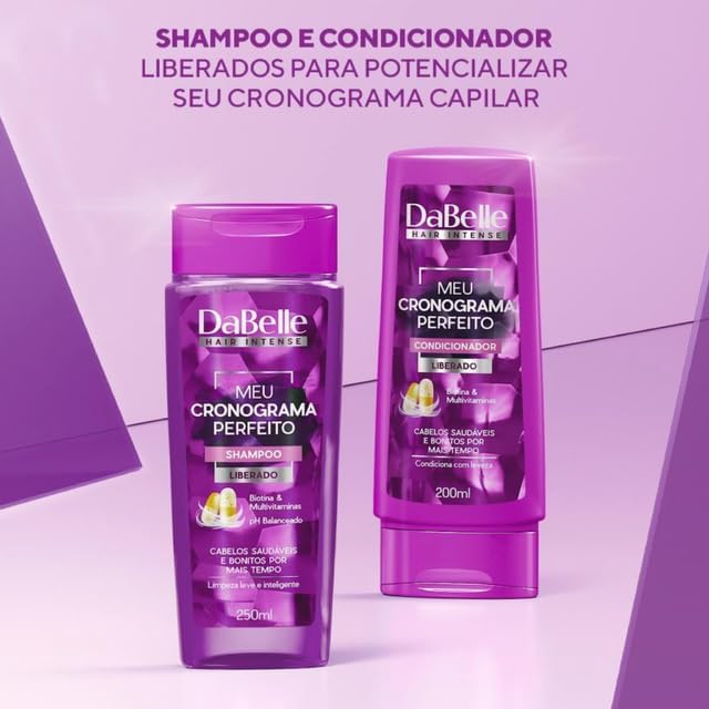 Sua rotina para cuidar dos seus cabelos, ficou muito mais fácil. Com o Kit Meu Cronograma Perfeito você pode montar o cronograma capilar de acordo com a necessidade do seu cabelo. Duty é uma empresa Brasileira de cosméticos, completamente apaixonada pela mulher brasileira. Composta por profissionais inovadores e com uma larga experiência no mercado de cosméticos. Diariamente antecipam tendências para desenvolver soluções cada vez mais disruptivas. ESPECIFICAÇÕES DO PRODUTO: – Marca: Dabelle; – Empresa: Duty Cosméticos; Contém: 01 Shampoo 250ml 01 Condicionador 175ml 01 Máscara Nutrição 400g 01 Máscara Hidratação 400g 01 Máscara de Reconstrução 400g Vegano e não testado em Animais; – Indicado para todos os tipos de cabelos; – Repõe a umidade, oleosidade e massa capilar natural nos fios; – Cabelos Hidratados, nutridos e reestruturados por mais tempo; MODO DE USO: SHAMPOO: Comece a aplicação pelo couro cabeludo. Aplique uma quantidade nas mãos e espalhe com movimentos circulares. Ao enxaguar, deixe escorrer para o comprimento. Repita a aplicação, se for necessário. CONDICIONADOR: Aplique somente no comprimento e pontas. Espalhe bem, enluvando todos os fios e enxágue logo em seguida. MÁSCARA: Após la os cabelos com o Shampoo Meu Cronograma Perfeito, aplique uma quantidade de Máscara H ou N ou R para enlu os fios e penteie delicadamente com os dedos ou com um pente de dentes largos. Deixe agir 3 min e enxágue bem. Se preferir uma hidratação mais potente, use touca por 5 min.
