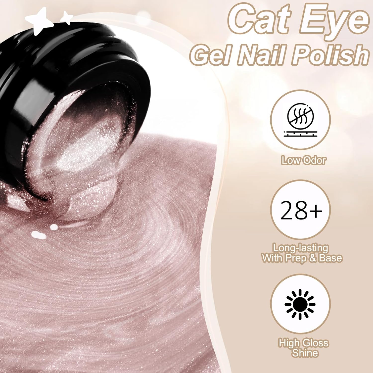 【Fórmula suave】Nosso esmalte de gel cateye é de baixo odor e livre de produtos químicos agressivos, resina natural. Usamos partículas magnéticas de alta qualidade para um efeito olho de gato mais pronunciado e brilhante.