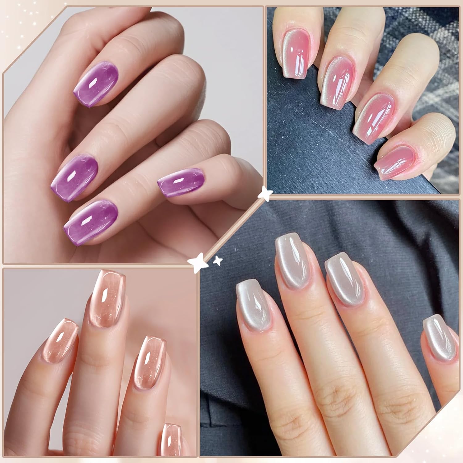 6 cores de cristal – efeito olho de gato Crystal Smoothie e efeito de galáxia de brilho holográfico trazem um acabamento brilhante para sentir o efeito olho de gato brilhante sob diferentes luzes ou ângulos.