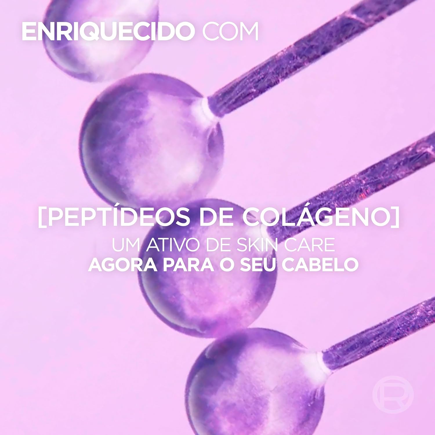 Com 7% de complexo de Peptídeos de Colágeno Vegetal, reconstrói a massa e fortalece a estrutura capilar.