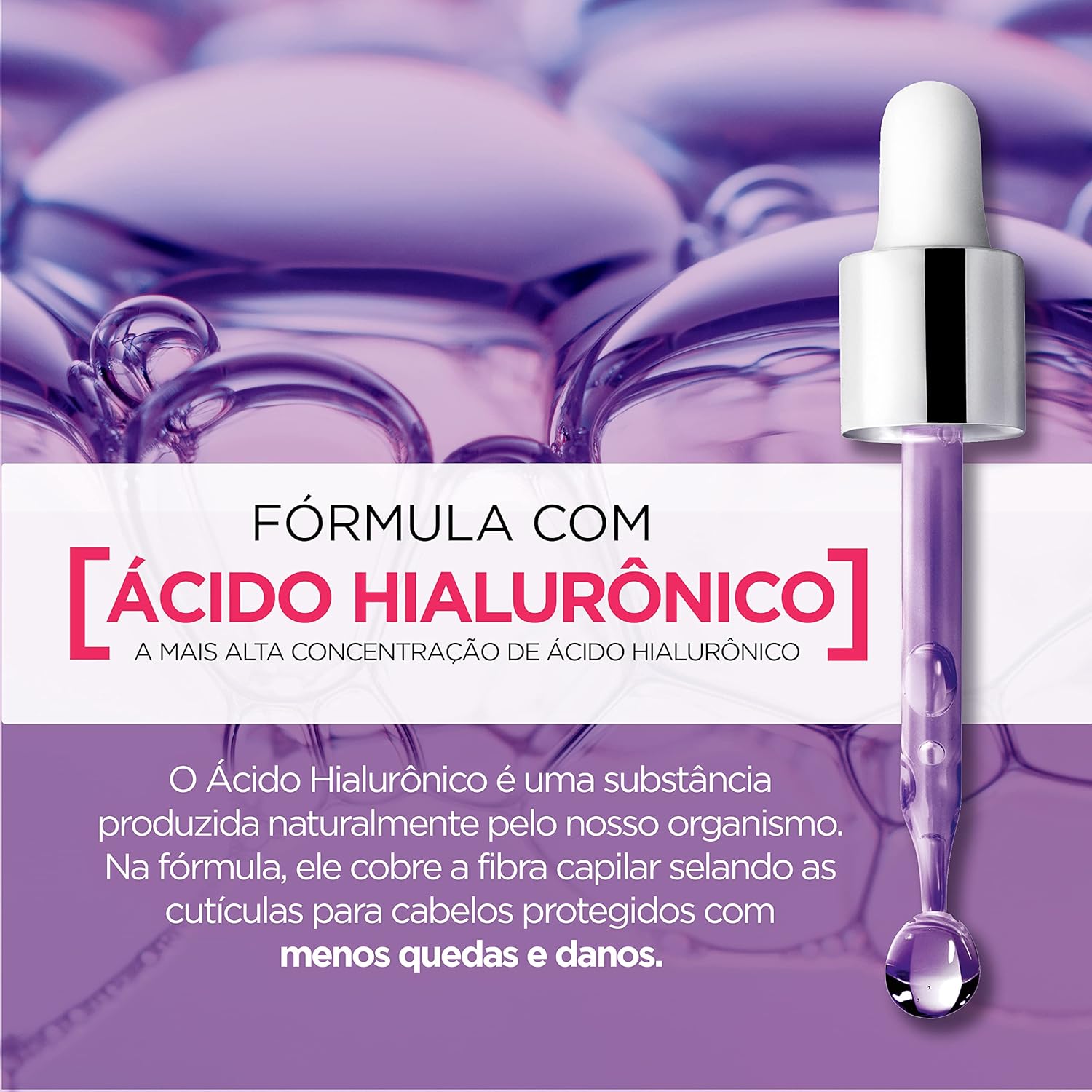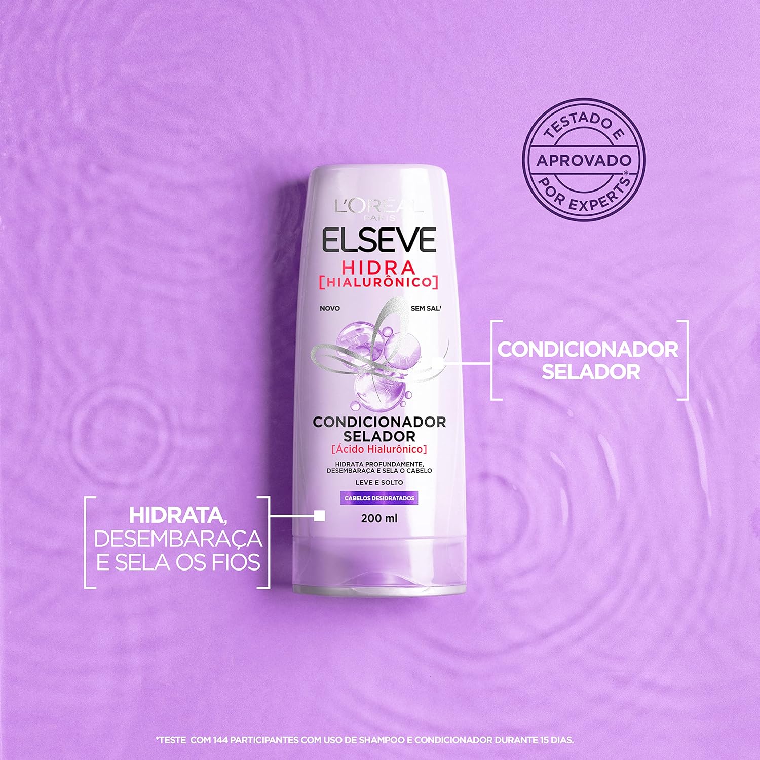 O Condicionador Selador Elseve Hidra Hialurônico é enriquecido com ácido hialurônico, um poderoso agente hidratante que retém até 1000x seu peso em água.