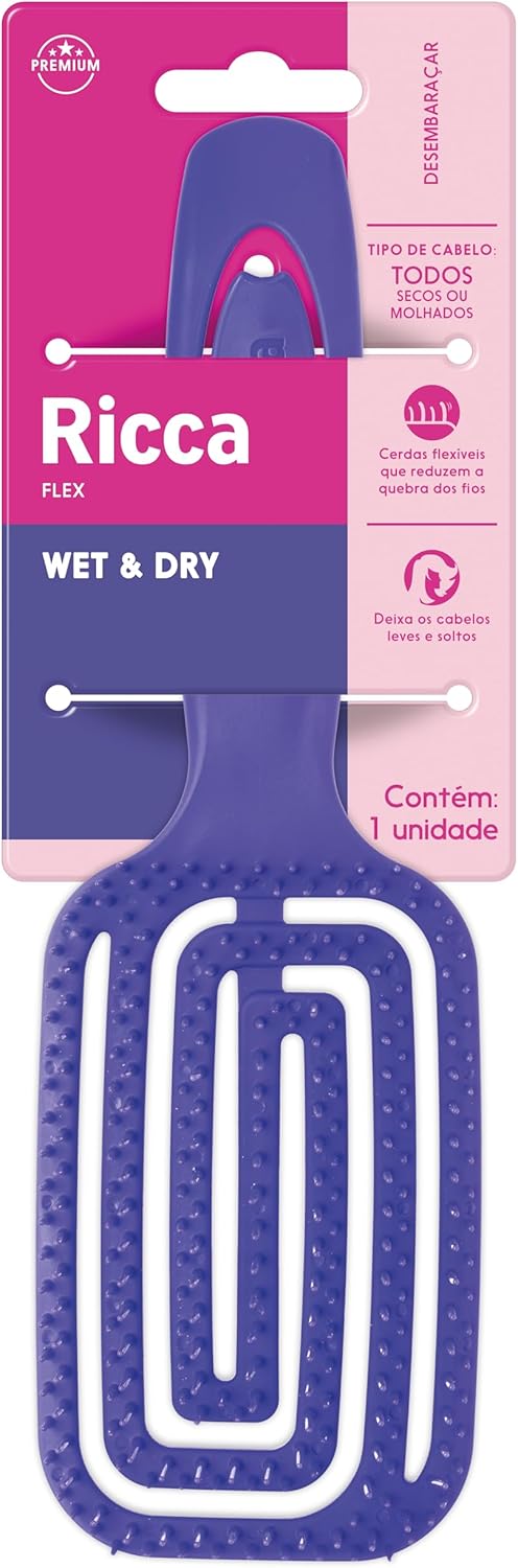 A Escova Ricca possui uma estrutura leve e flexível que se adapta ao contorno da cabeça, proporcionando muito mais conforto durante o uso. Suas cerdas de dupla altura com pontas arredondadas são especialmente desenhadas para não agredir o couro cabeludo, garantindo uma experiência suave e agradável.