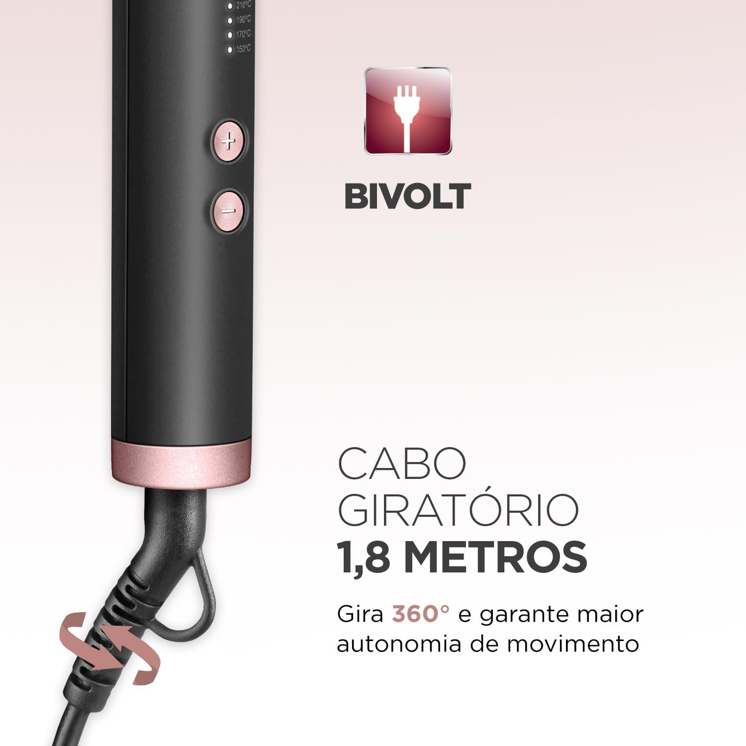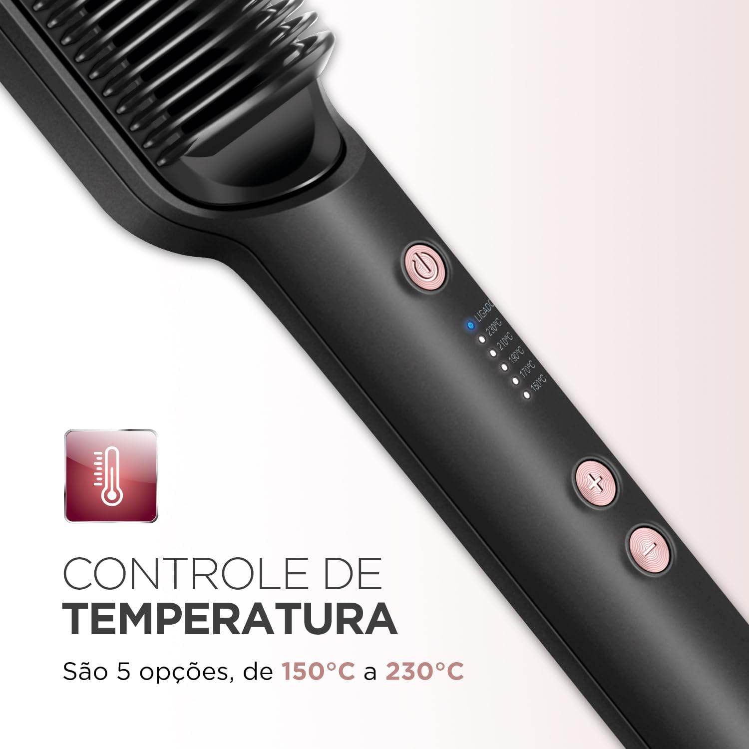 CONTROLE DE TEMPERATURA: São 5 opções de 150°C a 230°C, para um alisamento perfeito aos diferentes tipos de cabelo;
