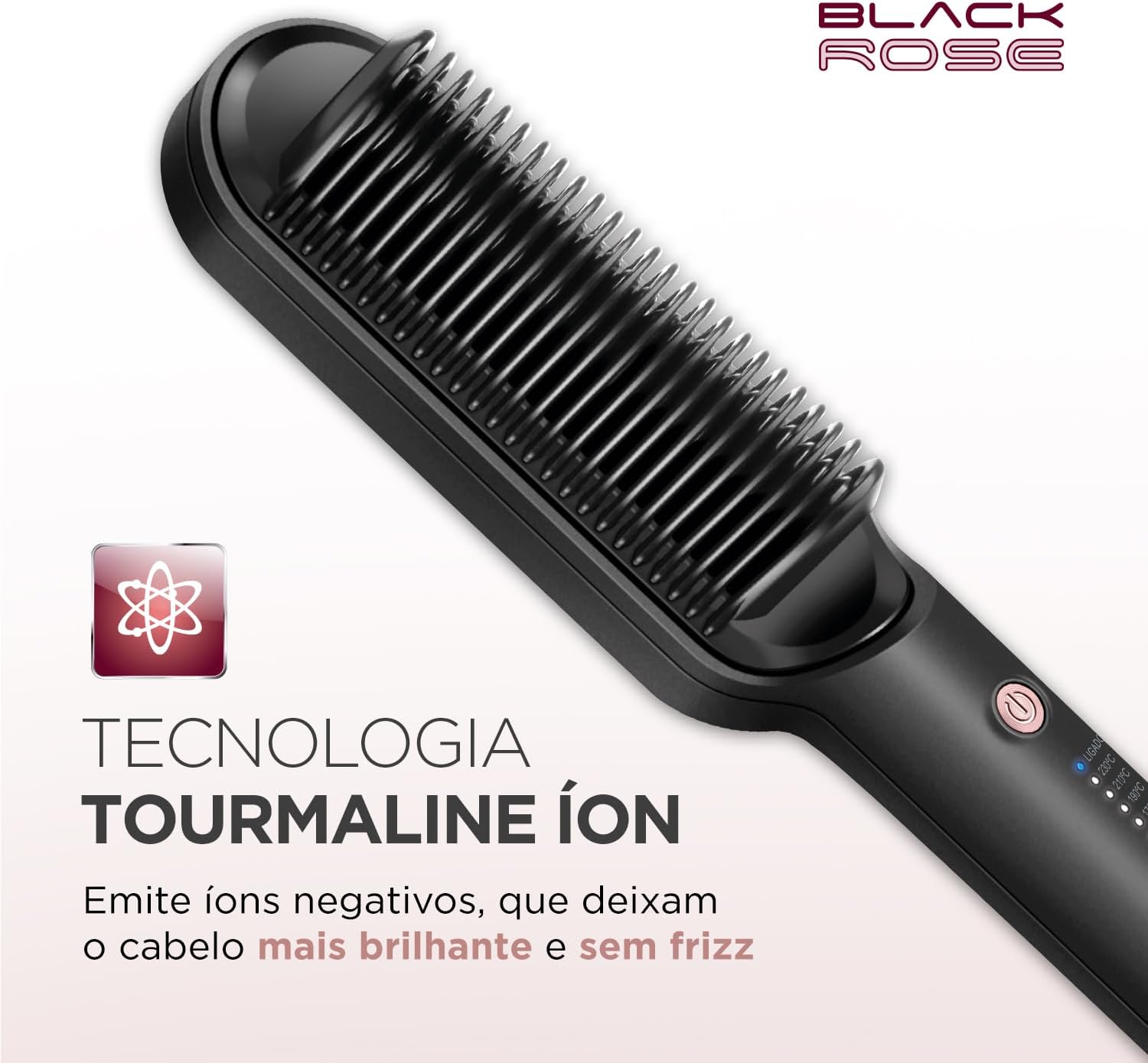 ALISAMENTO INSTANTÂNEO: As placas de cerâmica da Escova Black Rose possuem tecnologia PTC, que promovem o rápido aquecimento, além de manter a temperatura estabilizada, garantindo um alisamento perfeito em uma única passada!