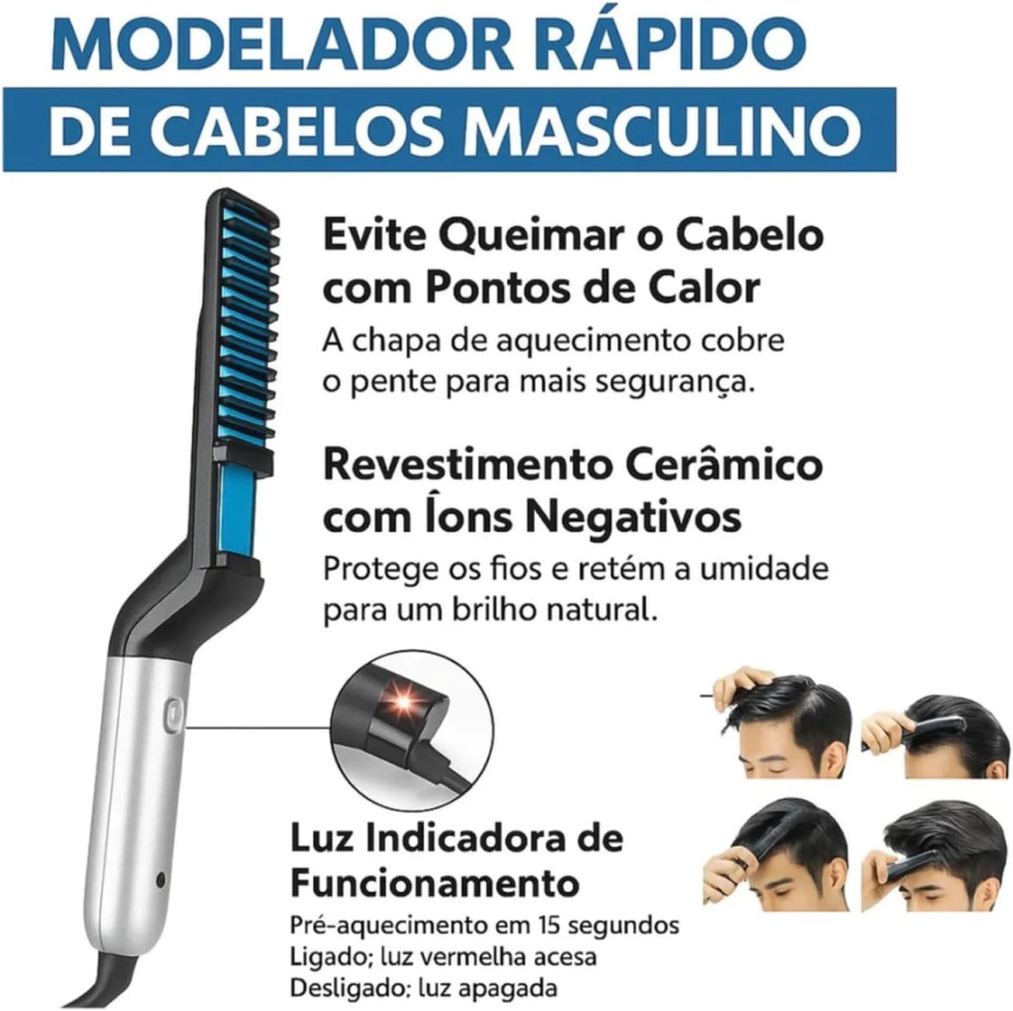 ✅ Uso Simples: basta pentear para arrumar o cabelo ou a barba.