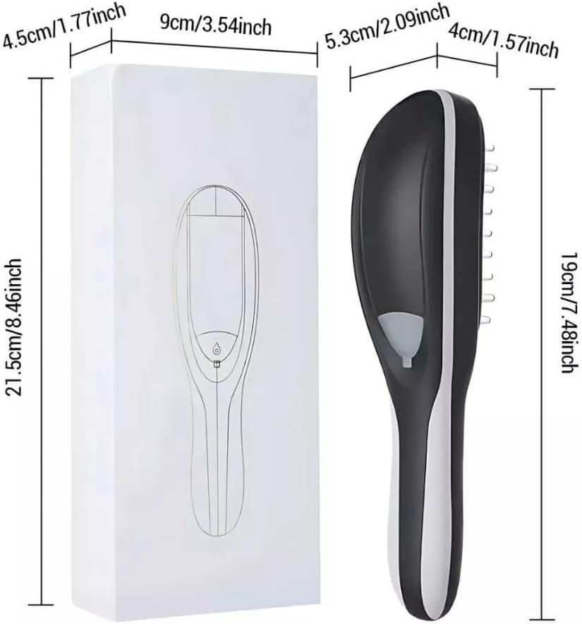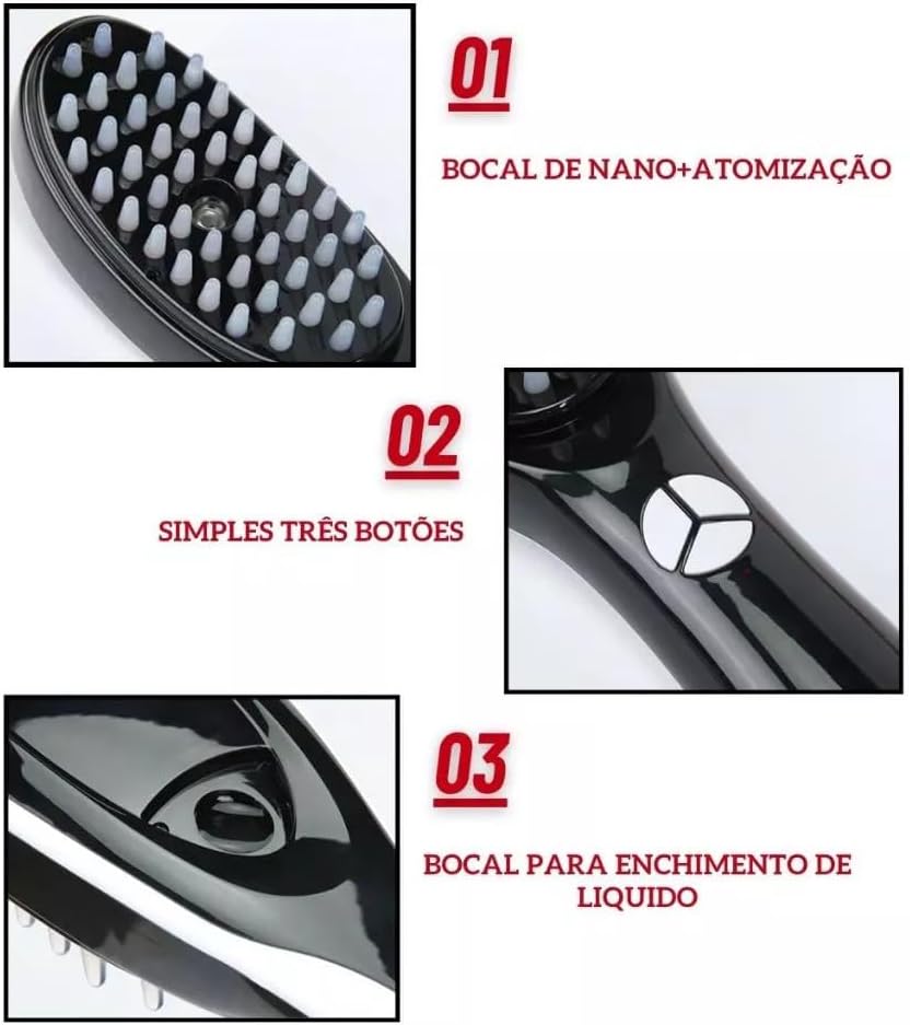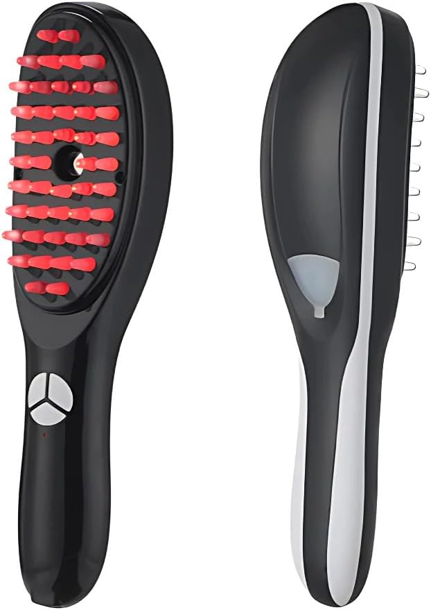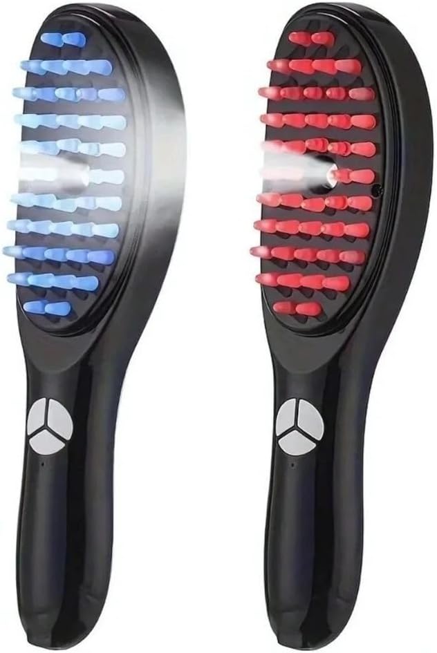 Para quem sofre com queda de cabelo, calvície ou fios fracos e ralos, esta escova é a solução inteligente e moderna. Tecnologia LED de tratamento capilar, vaporização ultrafina para loções, e massagem vibratória — tudo em um único dispositivo portátil e recarregável.