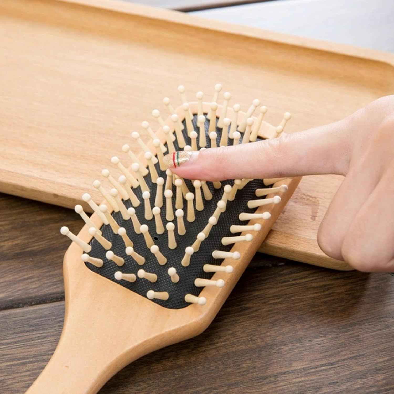 Escova de cabelo e pente de madeira, reduz o frizz e a estática, massageia o couro cabeludo, escova de cabelo de desembaraçamento para mulheres, meninas e crianças