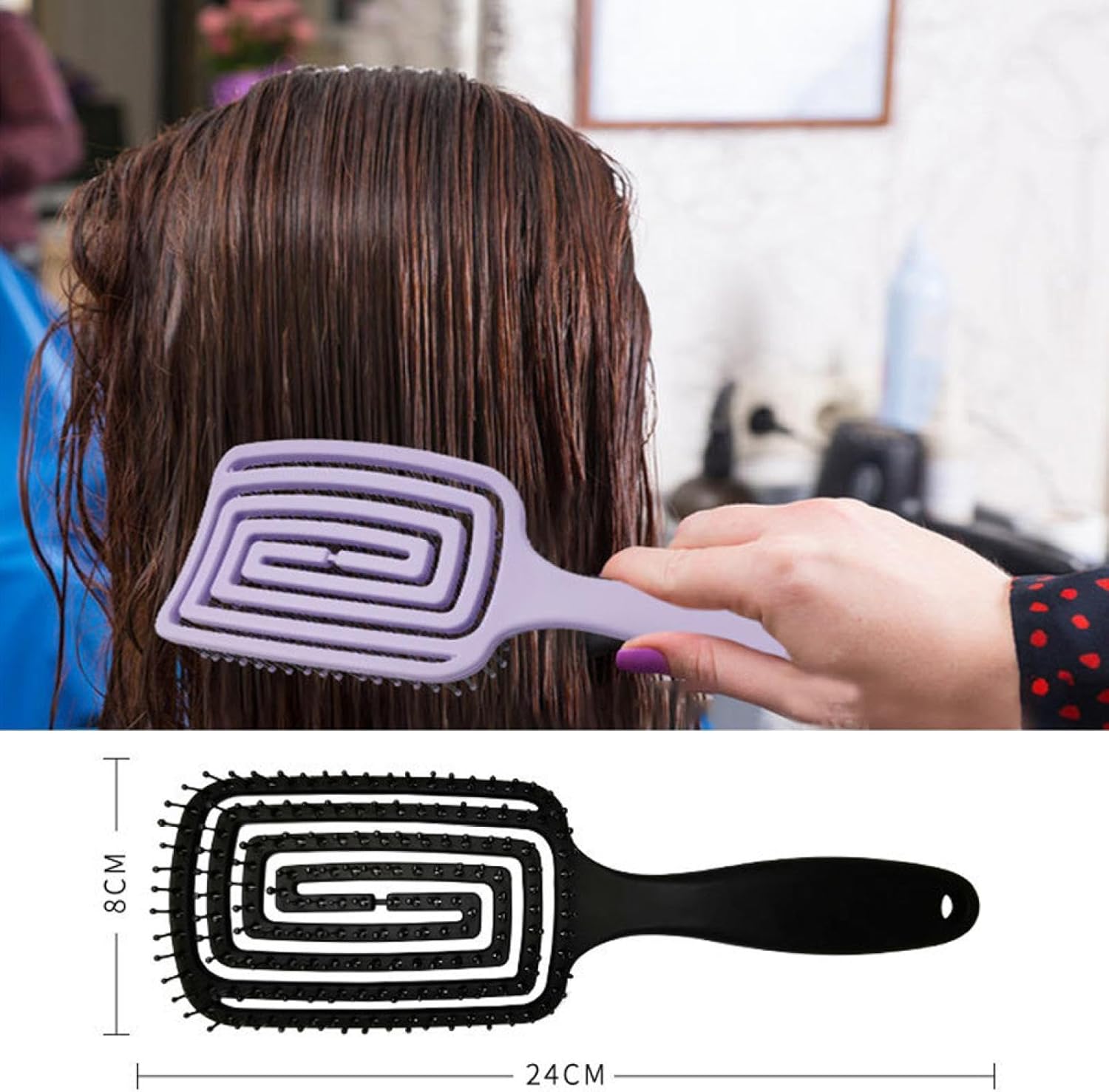 [Adequado para]: A escova de cabelo é adequada para mulheres, homens e crianças e pode eliminar nós sem puxar os cabelos. Ao mesmo tempo, protegerá seus cabelos de qualquer outra dor ou dano.