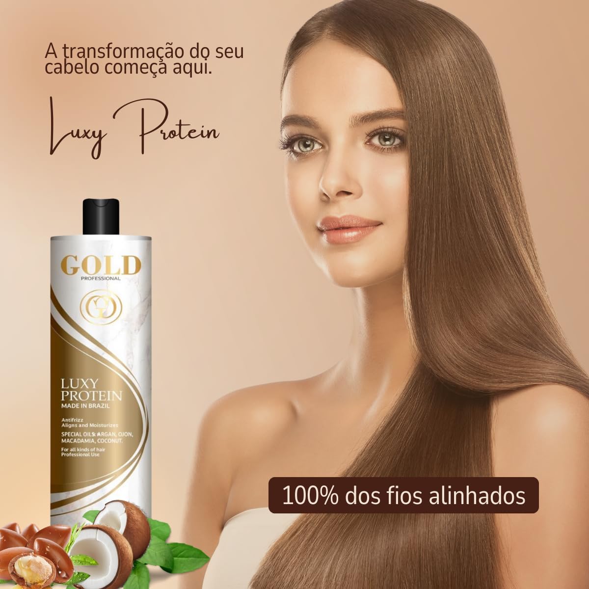 Descrição Redução do Frizz Progressiva com a Gold Protein Professional PRODUTO DE USO PROFISSIONAL A Gold Protein Professional 1 litro oferece controle excepcional do frizz e do volume excessivo. Este produto proporciona fios livres de frizz, além de disciplinar até os cabelos mais rebeldes. A sedosidade, maciez, brilho e movimento são os resultados de uma tecnologia avançada, que garante hidratação profunda e um tratamento completo da fibra capilar, proporcionando fios disciplinados e visivelmente mais saudáveis. Reparação, Defrizante e Reconstrução O ativo Proteína do Trigo é o principal componente da tecnologia inovadora da Gold Protein Professional. Esse ativo atua diretamente na fibra capilar, reparando, defrizando e reconstruindo os danos causados por processos químicos e radicais livres, como poluição, calor, raios UV e umidade. A Gold Protein Professional vai além de um simples anti-frizz, oferecendo um tratamento completo, restaurador e transformador para os cabelos. O Leque de Benefícios Oferecidos pelo Produto A Gold Protein Professional não é apenas um tratamento para o controle de frizz, mas sim um cuidado completo e eficaz para a reparação dos fios. Seu tratamento reconstrutor auxilia na recuperação dos danos causados por químicas anteriores e potencializa a maciez do cabelo. Além disso, ele mantém os fios livres de frizz por mais tempo, aumentando a durabilidade do efeito. Confira os principais benefícios da Gold Protein Professional: Anti-Frizz poderoso com alta durabilidade. Toque sedoso e hidratação intensa para os cabelos. Equilíbrio da oleosidade natural e nutrição profunda. Fios luminosos e com mais brilho. Reconstrução que traz mais força e resistência aos fios. Reparação de danos causados por processos químicos e agentes externos. Redução de frizz e volume excessivo. Proteção contra radicais livres, formando uma camada protetora ao redor dos fios. Aplicação prática e fácil, com resultados duradouros. A Tecnologia Completa da Gold Protein Professional Todos os benefícios da Gold Protein Professional 1 litro são possíveis graças à sua fórmula avançada, que combina tecnologia e ingredientes de ponta. O ativo inteligente Proteína do Trigo age diretamente na fibra capilar, promovendo retexturização e otimizando a absorção de nutrientes, além de melhorar a maleabilidade dos fios, conferindo um toque sedoso e macio. O Óleo de Coco forma uma camada protetora ao redor do fio, defendendo-o contra danos externos, e ainda controla fios rebeldes, elimina pontas duplas e reduz o frizz e o volume excessivo. A Macadâmia oferece elasticidade e flexibilidade aos fios, conferindo-lhes movimento e resistência, recuperando a fibra capilar dos danos causados por tratamentos químicos. Por fim, o Ácido Lático penetra na camada interna do fio, restaurando sua luminosidade, hidratação e reparando as cutículas capilares. Indicações da Gold Protein Professional A Gold Protein Professional é indicada para cabelos quimicamente tratados. O tratamento térmico pode ser utilizado em todos os tipos de cabelo, desde os lisos até os mais cacheados e crespos. Produto de uso profissional, ele oferece um tratamento térmico anti-frizz de alta performance, com rendimento de até 7 aplicações, dependendo do comprimento do cabelo.
