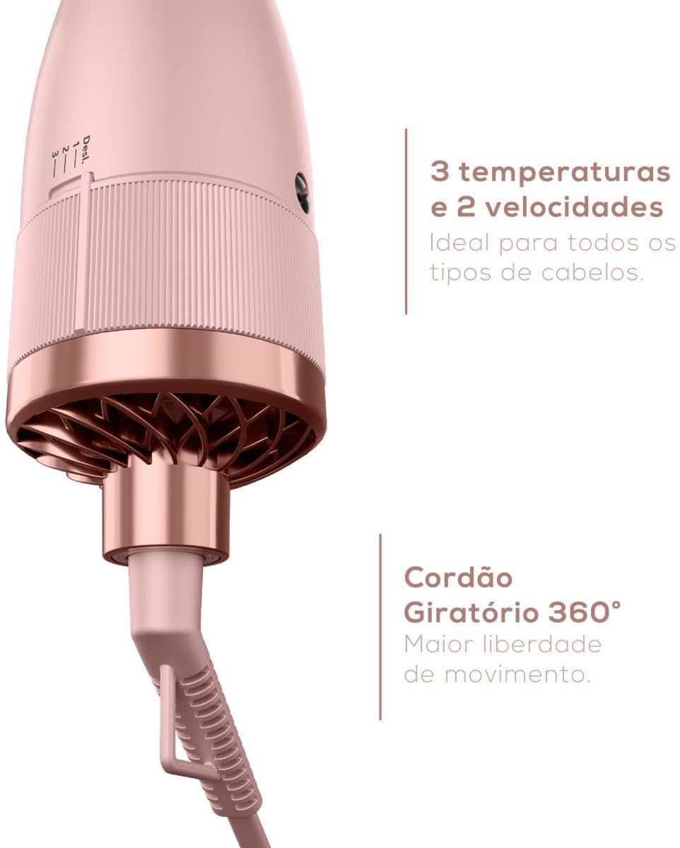 Bivolt: Leve sua Escova Secadora para qualquer lugar, sem preocupações com voltagem, garantindo praticidade tanto no dia a dia quanto em viagens.