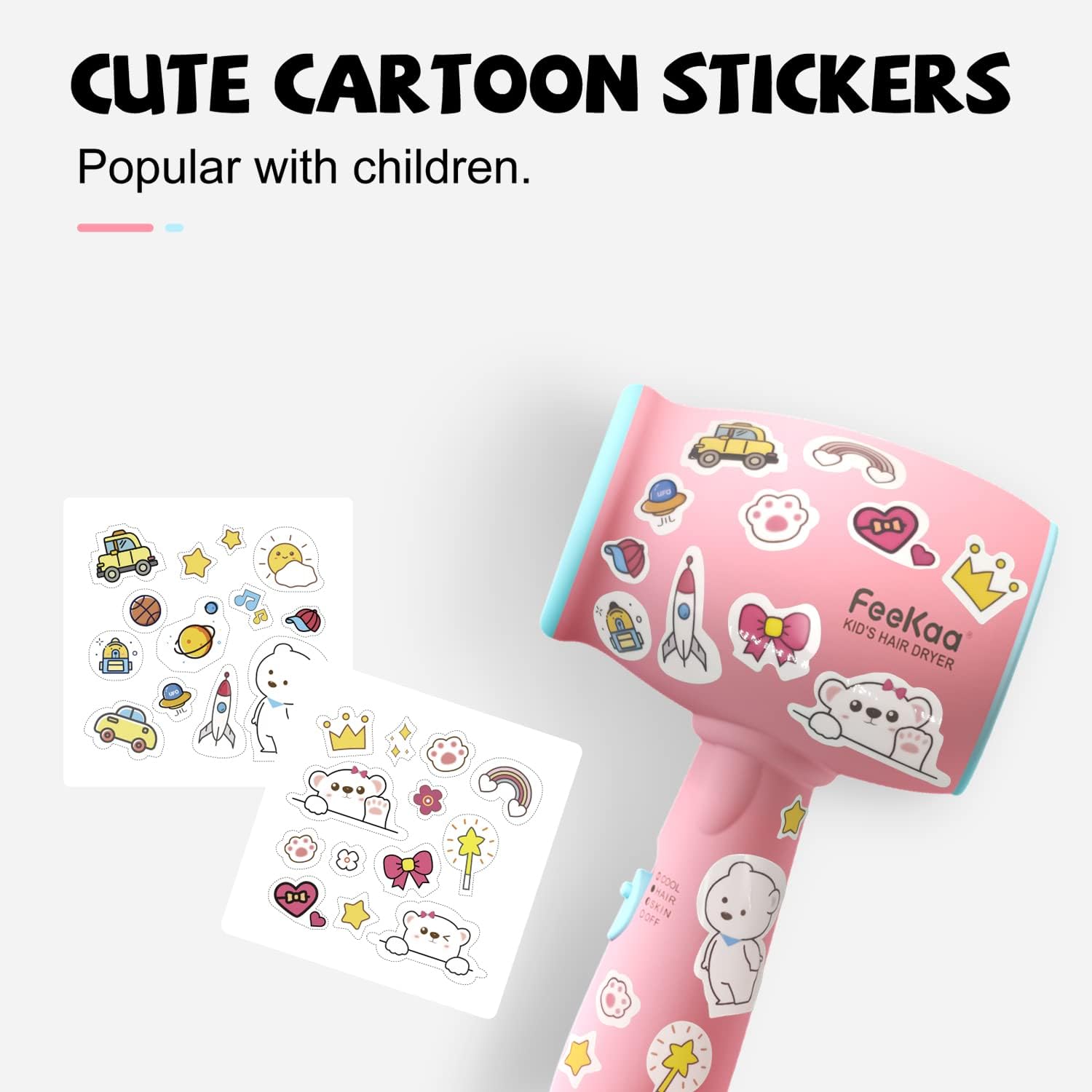 🎁 Boa opção de presente – Presente perfeito para crianças. Adesivos fofos de desenho animado são populares entre as crianças. As crianças podem secar o cabelo sozinhas. A mamãe não precisa mais secar o cabelo para crianças. E as funções de calor suave o tornam um presente perfeito para o chá de bebê da mamãe, para fornecer um melhor cuidado para bebês, recém-nascidos.