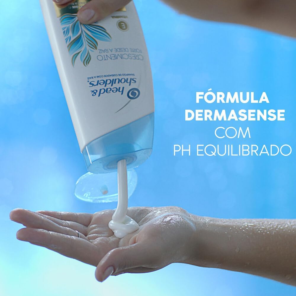 Este shampoo ajuda seu cabelo a crescer forte desde as raízes. Além disso, ele também cuida de seu couro cabeludo, para que permaneça saudável e limpo por mais tempo. Um shampoo ideal para nutrir e reconstruir seu cabelo da raiz às pontas. Elaborado com vitamina E e com poder antioxidante para um cabelo forte e saudável. Este shampoo apresenta a inovadora fórmula DermaSense com pH balanceado. Head&Shoulders tem mais de 50 anos de pesquisa científica, relacionada à caspa e ao couro cabeludo.