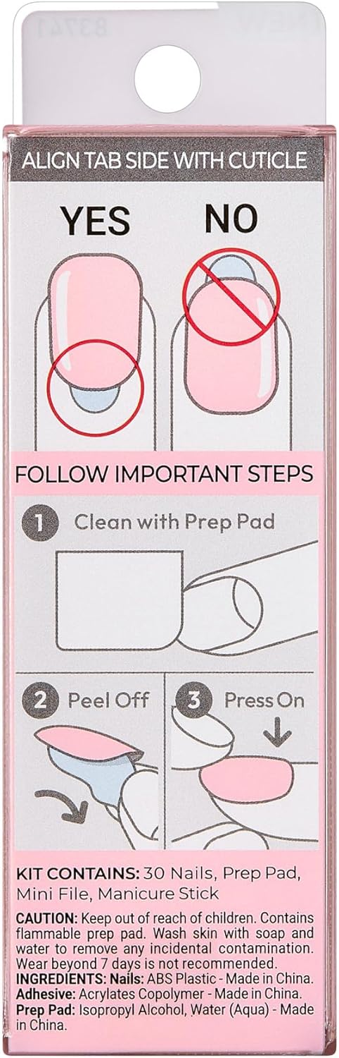 Sua manicure diária ficou mais fácil! Diga adeus ao esmalte com a NOVA manicure Impress Color Press-on. Uma mani sem polimento em minutos. Com a tecnologia PureFit, super fino e super confortável… basta pressionar e pronto! As unhas de gel têm a aparência e o toque de suas unhas naturais, e não é necessária cola! Novas cores sólidas não têm brilho nem detalhes; elas vêm nos tons mais populares, em tantos tons modernos quanto esmaltes de unhas. Com o ajuste confortável IMpress e o adesivo Super Hold, você conseguirá facilmente uma manicure com aparência profissional em casa, em minutos. As unhas postiças vêm prontas para usar, sem necessidade de polimento e sem tempo de secagem! Eles também são fáceis de aplicar, à prova de lascas, à prova d’água, superduráveis, sem manchas e não danificam suas unhas naturais. O kit contém 30 unhas, almofada de preparação, mini lixa e bastão de manicure. Há um tom IMpreS para cada humor e cada momento, e uma vez que você experimenta a aparência profissional e a facilidade de usar calças compridas, é difícil voltar a usar esmaltes.