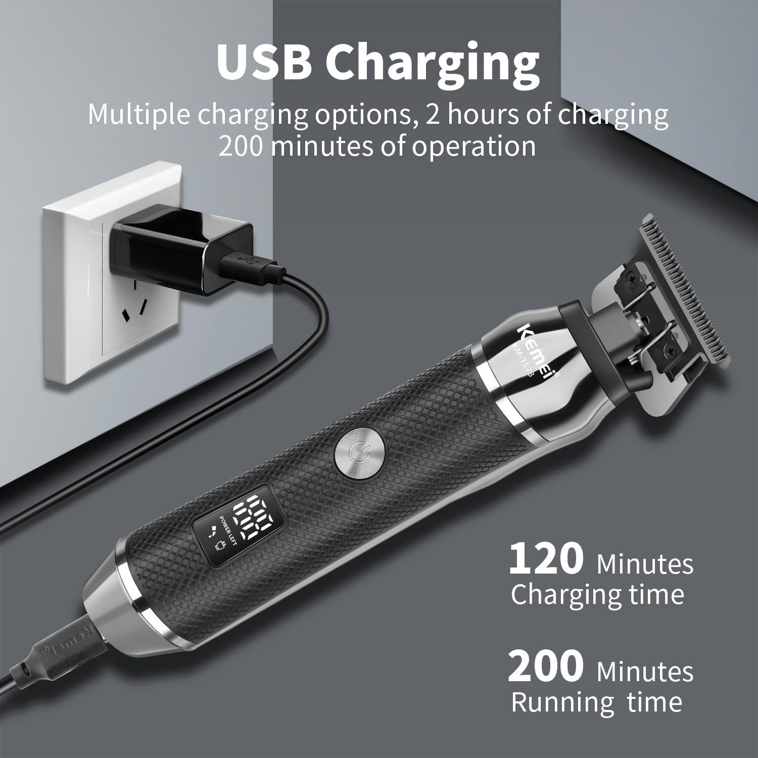 Eleve seu jogo de cuidados com os cortadores de cabelo profissionais sem fio da KEMEI Perfeito para o aspirante a barbeiro ou aficionado por estilo doméstico, nosso aparador de cabelo é projetado para tornar cada corte uma obra-prima. Pentes ajustáveis em abundância! Com cinco pentes de limite diferentes (1 mm, 2 mm, 3 mm, 4 mm, 5 mm), você terá todas as opções de comprimento que você precisa na ponta dos dedos. Se você está buscando um novo zumbido ou aperfeiçoando esse desbotamento, este aparador te protege. Power to the People! Graças ao nosso motor potente, você pode dizer adeus a puxar e puxar. É suave para todos os tipos de cabelo! Aproveite o corte sem esforço a cada deslizar — apenas pura felicidade estilística. Liberdade na ponta dos seus dedos! Com uma bateria de alta capacidade, este aparador de cabelo oferece 3 horas de funcionamento sem fio após o carregamento. Além disso, com recursos de carregamento USB, você pode levá-lo para qualquer lugar e manter a crina sob controle — chega de desculpas para dias ruins de cabelo! Fique por dentro! Nosso elegante visor digital de LED mantém você informado com porcentagens de bateria em tempo real e lembretes práticos para carregar, reabastecer e limpar. É como ter um assistente pessoal dedicado à sua rotina de cuidados pessoais! A escolha perfeita para presente! Procurando um presente atencioso? Não procure mais! O aparador de cabelo KEMEI é um presente fantástico para os homens em sua vida que apreciam um bom acabamento ou apenas querem experimentar seu estilo. Prepare-se para liberar seu estilista interior com o aparador de cabelo sem fio KEMEI — onde a precisão encontra a conveniência em um pacote elegante!