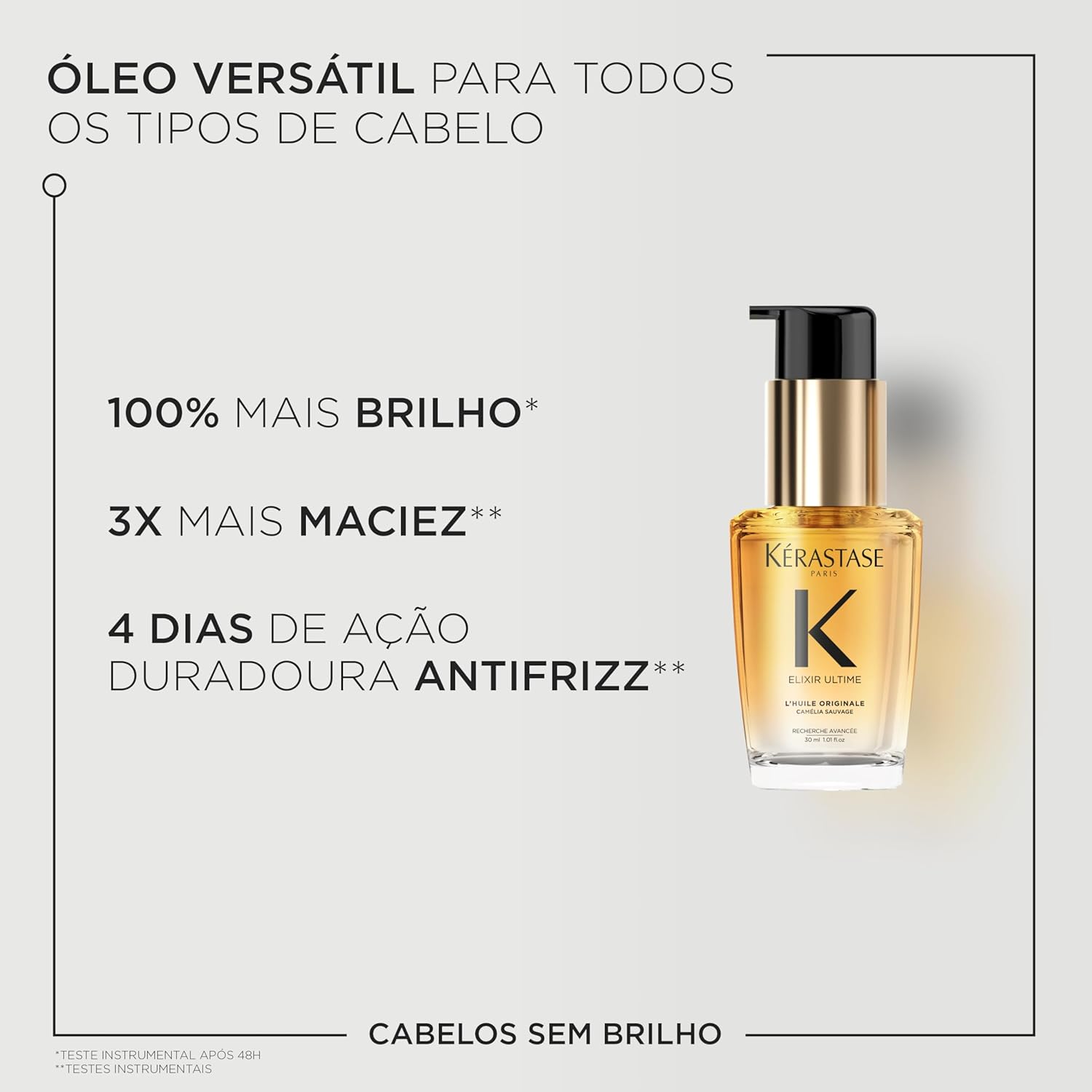 Novo Elixir Ultime, agora refilável Cabelos 97% mais fortes por 48H, + 72H de hidratação