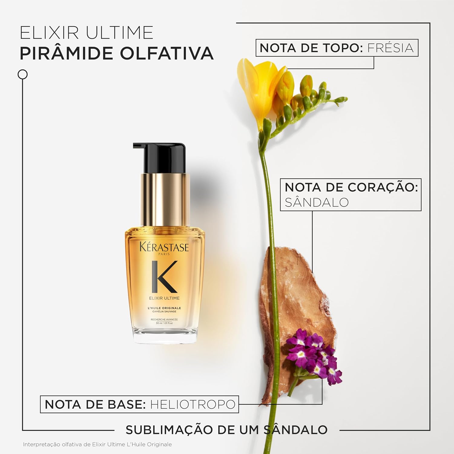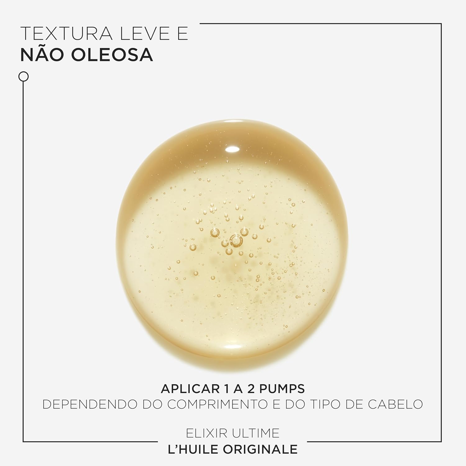 O óleo de cabelo Elixir Ultime é infundido com uma mistura de óleos preciosos que visam suavizar, fortalecer e hidratar todos os tipos de cabelo. Camélia, Marula e óleo de Argan se unem para proporcionar cabelos brilhantes e sem frizz, mais suaves ao toque.