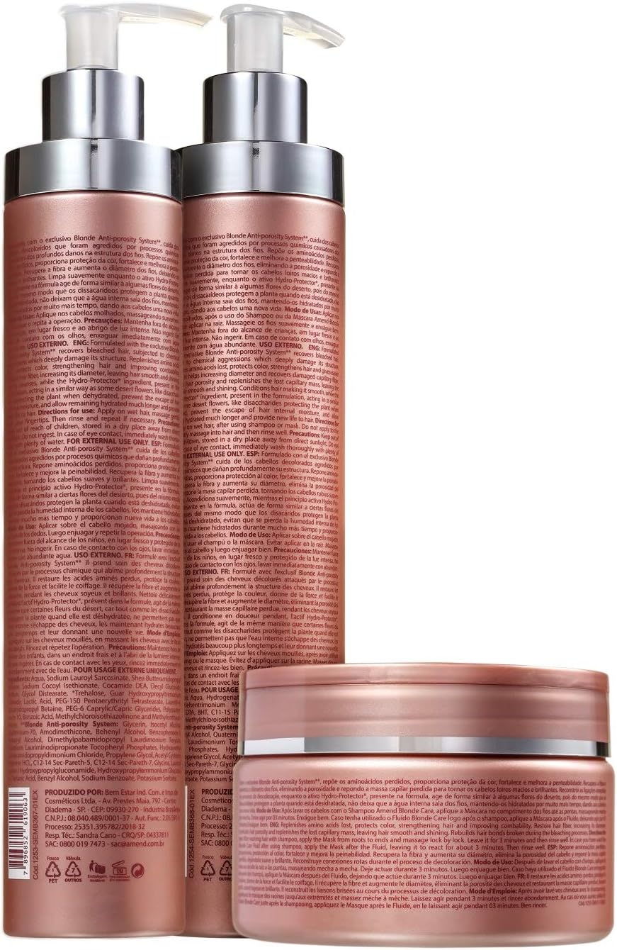 Benefícios: Kit de tratamento para cabelos loiros que hidrata, reconstrói e elimina a porosidade, devolvendo vida aos fios e protegendo a cor do desbotamento