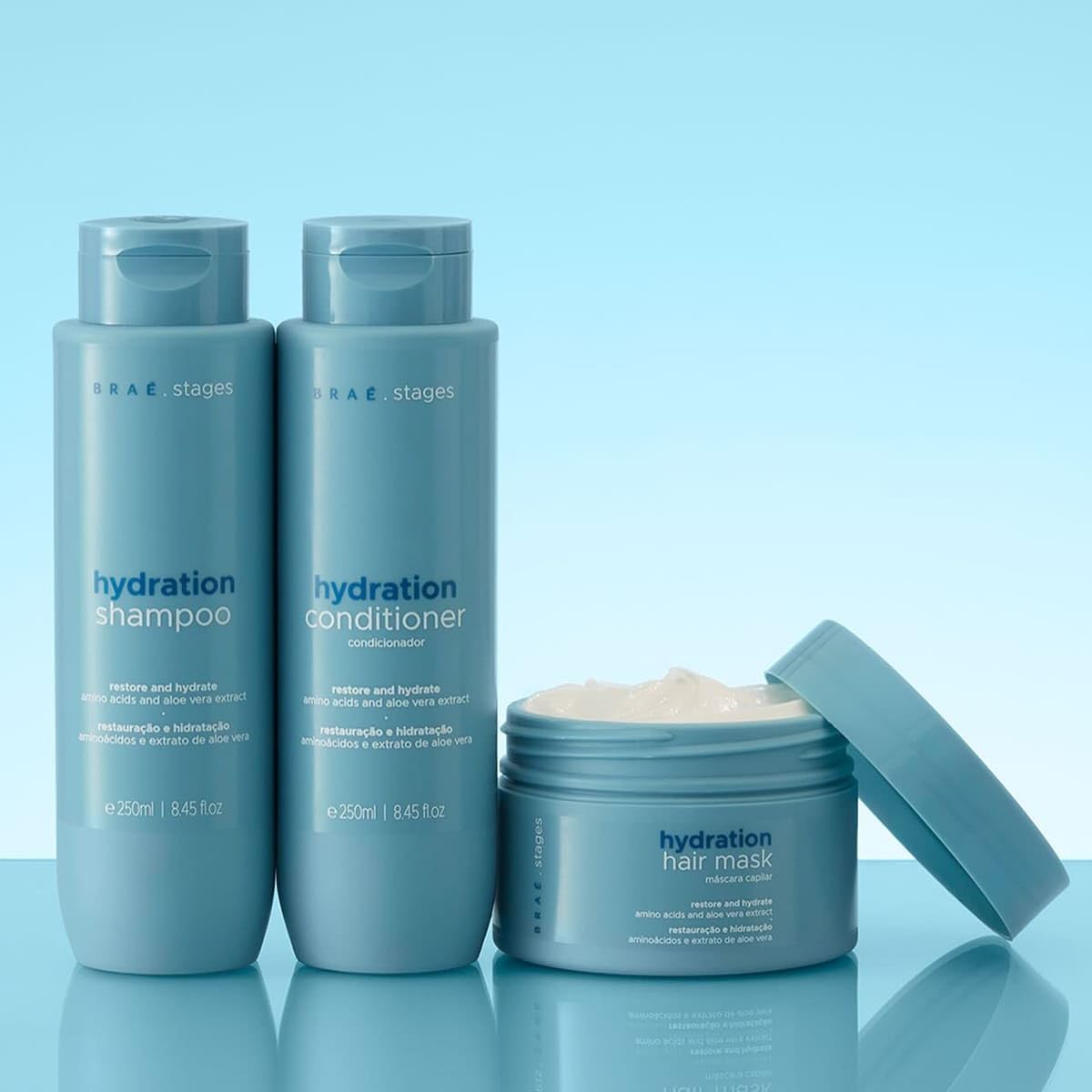 KIT COMPLETO: Conjunto de hidratação com shampoo, condicionador e máscara capilar, cada um com 250ml para cuidados completos dos cabelos