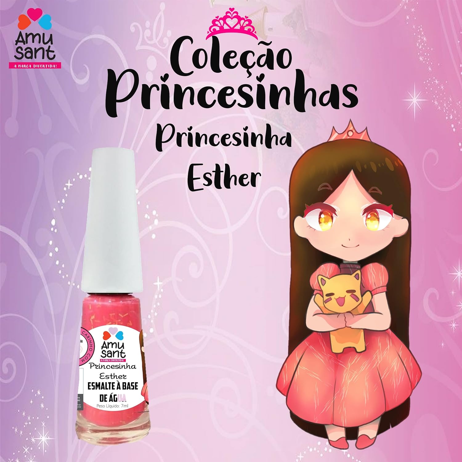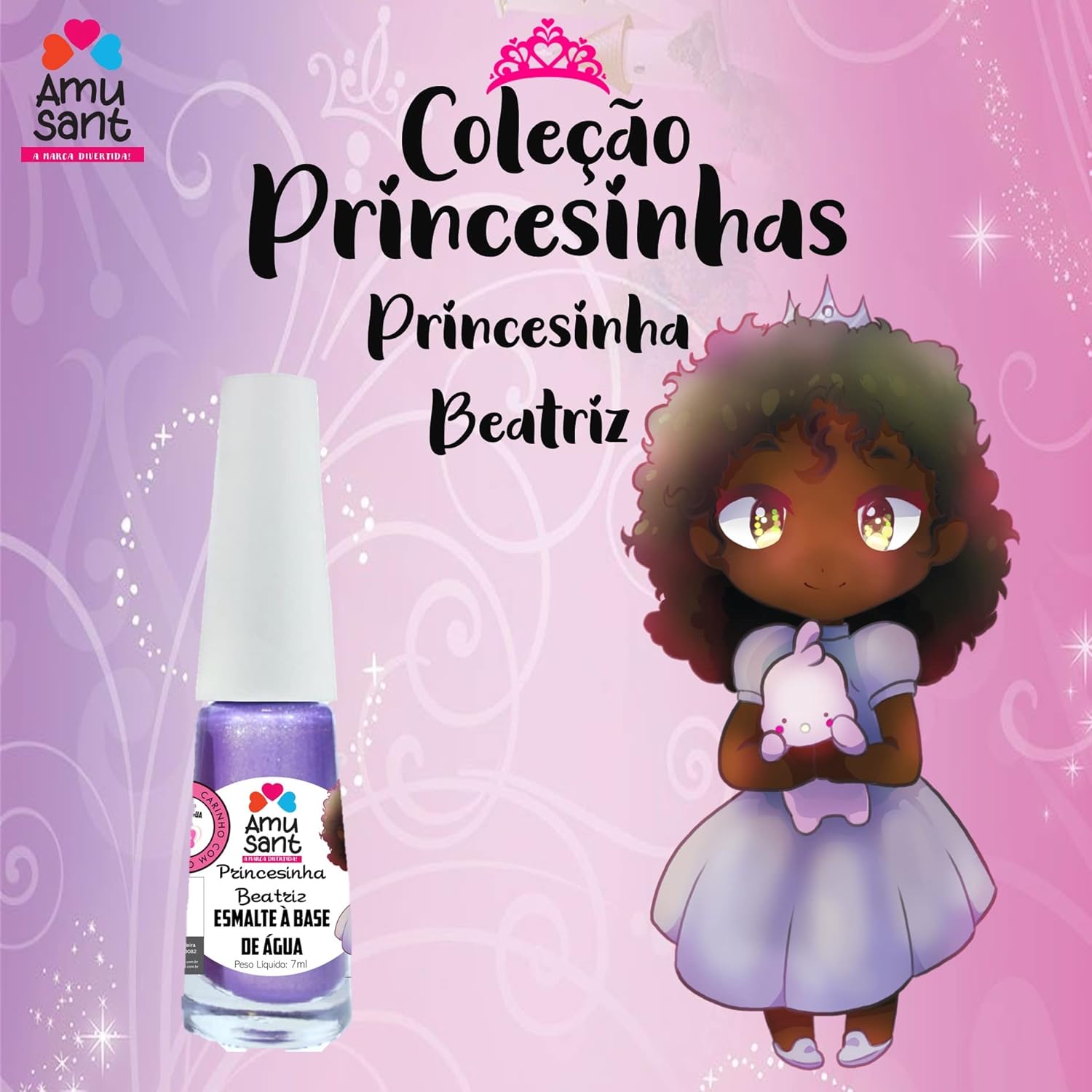 Kit com 3 Esmaltes Infantil a Base de Água Amusant Coleção Princesinhas